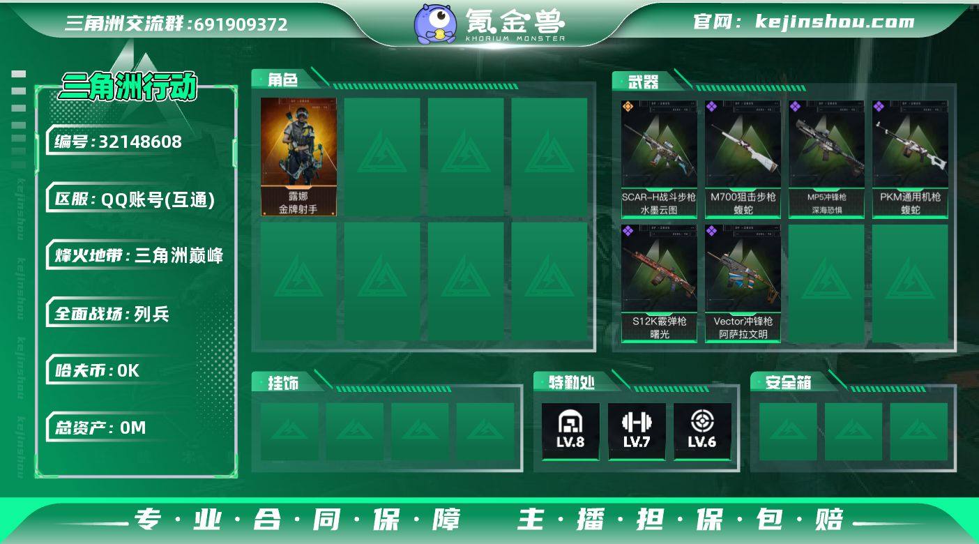 XXSJZ2021【凌霄戍卫 处刑者】三端互通-总价值36.5M-哈夫币5k-烽火地带等级60-烽火地带【干员皮肤】威龙-凌霄戍卫 露娜-金牌射手 乌鲁鲁-荒原猎手【近战武器】黑鹰 处刑者【枪皮】腾龙突击步枪-古铜 PTR-32突击步枪-黑潮 M4A1突击步枪-粉色涂装 M4A1突击步枪-高雅黑 M4A1突击步枪-海色 M4A1突击步枪-繁盛 AKM突击步枪-前沿科技 AKM突击步枪-肃杀 QBZ95-1突击步枪-高雅黑 QBZ95-1突击步枪-三角洲力量 QBZ95-1突击步枪-海色 QBZ95-1突击步枪-2026 QBZ95-1突击步枪-凌霄戍卫 AKS-74U突击步枪-磐石 AKS-74U突击步枪-冰天雪地 ASh-12战斗步枪-繁盛 K416突击步枪-几何迷彩 K416突击步枪-高雅黑 K416突击步枪-重击 K416突击步枪-一帆风顺 K416突击步枪-阿萨拉特攻 K416突击步枪-冬日风情 K416突击步枪-腊梅 K416突击步枪-行动记录 M16A4突击步枪-高雅黑 AUG突击步枪-浅蓝涂装 M7战斗步枪-红色涂装 M7战斗步枪-黑巧甜心 M7战斗步枪-重击 M7战斗步枪-百步穿杨 SG552突击步枪-浅蓝涂装 SG552突击步枪-海浪 SG552突击步枪-狂欢 SG552突击步枪-2026 SG552突击步枪-马年新春 SG552突击步枪-贴花艺术 SG552突击步枪-运动员 AK-12突击步枪-变色龙 AK-12突击步枪-马年新春 SCAR-H战斗步枪-红色涂装 SCAR-H战斗步枪-数码迷彩 SCAR-H战斗步枪-荣耀列队 SCAR-H战斗步枪-水墨云图 G3战斗步枪-高雅黑 G3战斗步枪-主宰 G3战斗步枪-哈夫克警备 G3战斗步枪-流沙送葬 PTR-32突击步枪-黄蜂 PTR-32突击步枪-典雅 CAR-15突击步枪-变色龙 CAR-15突击步枪-狂欢 CAR-15突击步枪-来财 AS Val突击步枪-隐秘行动 AS Val突击步枪-黑巧甜心 AS Val突击步枪-百步穿杨 腾龙突击步枪-三角洲力量 腾龙突击步枪-猎鳄行动