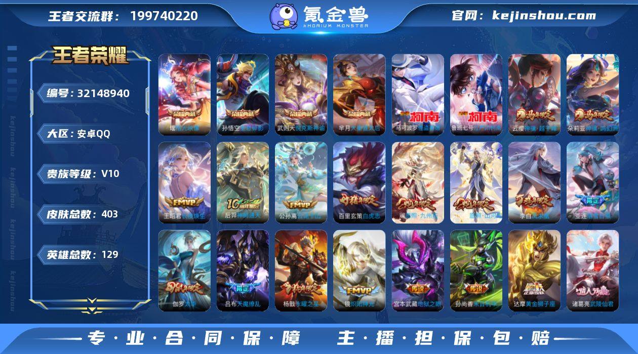 【精品号手慢无】V10,历史王者印记20,荣耀印记2,打野29段,发育路28段,84抽积分夺宝,传说皮肤35,史诗皮肤126,600+亲密度花,14改名卡,全息碎影,拾光映像,江户川柯南,怪盗基德,猫影幻舞,炽阳神光,仲夏夜之梦,艾琳觅芳踪,落雪白狼,神骥·鸣幻洲,神骥·越千峰