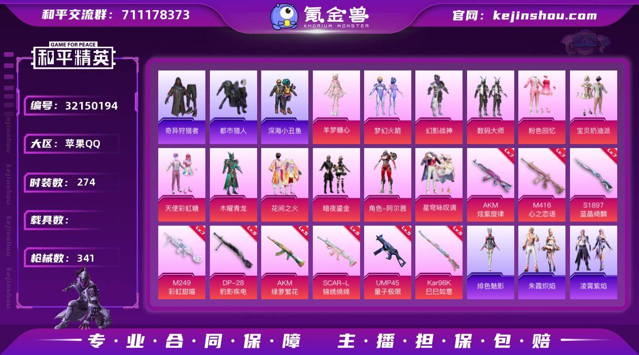 YZJ15513 可二次 苹果Q-4稀有12粉装9特效枪26热门274套装341枪皮 107754热力值 精品战神身法号 地铁满天赋 294扭蛋碎片未使用 SS25战神框 新火箭少女 巧克力二姐妹 和服 羊梦糖心 幻影战神 咏叹调 都市 红眼罩 奇异狩猎者 深海小丑鱼 金羽特工 奇迹天团 东方飞龙 天命 粉熊包 满级M4心之恋语 满级AK炫紫旋律 满级M249彩虹甜喵 21印记 历史无敌战神 【4稀有】 奇异狩猎者 AKM-缤纷海域 都市猎人 浪漫天命 【12粉装】 梦幻火箭 宝贝奶油派 天使彩虹糖 阿尔茜 木曜青龙 星穹咏叹调 羊梦糖心 幻影战神 粉色回忆 数码大师 花间之火 暗夜鎏金 【9特效枪】 SCAR-L-锦绣绵绵 (5级) M416-心之恋语 (7级) AKM-炫紫旋律 (7级) AKM-绿萝繁花 (5级) Kar98K-巳巳如意 (5级) DP-28-豹影疾电 (5级) UMP45-量子极限 (5级) M249-彩虹甜喵 (7级) Mk14-福马献瑞 (1级) 【26热门】 Mark.06 奇迹天团 龟仙人 雪山精英 东方飞龙 鹰眼刺客 奇迹天团 狮王雄心 深海小丑鱼 金羽特工 暗夜契约 暗影哥特 团圆交子 瑞龙福将 纯白誓言 忍者信条 水银刺客 狂沙舞者 漫步者 玄武圣者 破蛋小黄鸡 极速红龙 英勇保护者 AKM-奇异狩猎者 M762-瑞龙福将 S686-奇异狩猎者 【3飞行器】 太空嘟嘟飞行器 庄周梦蝶飞行器 天之羽翼飞行器 【6头盔】 精灵迷巫头盔 折纸暴龙头盔 甜心宝贝头盔 百万伏特头盔 幻影战神头盔 金羽特工头盔 【4背包】 甜心宝贝背包 幻影战神背包 萌熊伴侣背包 花间之火背包 营地ID:736435302
