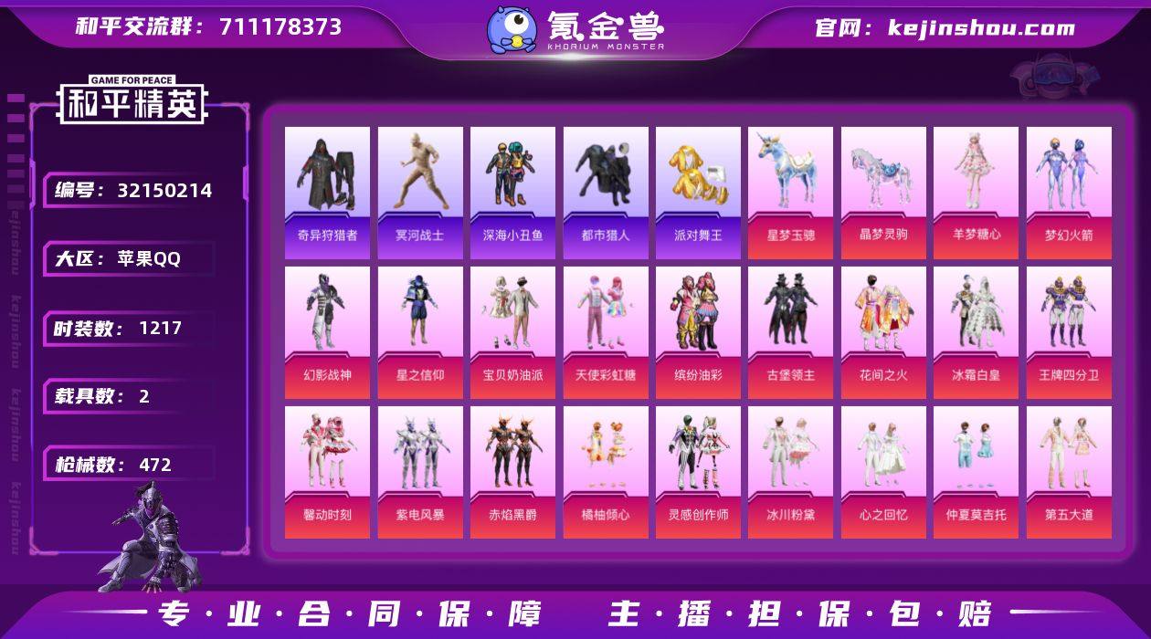 xy【165358热力值】【无敌战神】【25王牌】【13绝世】【28粉装23特效枪2马】 【热门】冥河战士,派对舞王,都市猎人,暗影哥特,小丑鱼套装,浪漫波比,狂沙舞者,奇异狩猎者,雪山精英,浪漫天命 【载具】晶梦灵驹,星梦玉骢 【粉装】羊梦糖心,梦幻火箭,天使彩虹糖,宝贝奶油派,灵感创作师,第五大道,缤纷油彩,萌物绒绒,小可学妹,白勺歌姬,飒粉甜心,幻影战神,星之信仰,古堡领主,花间之火,冰霜白皇,王牌四分卫,馨动时刻,仲夏莫吉托,心之回忆,冰川粉黛,橘柚倾心,赤焰黑爵,紫电风暴 【特效枪】七级破片手榴弹-热量炸弹,七级AUG-南国舞曲,七级SCAR-L-甜梦小狐,七级UMP45-相思残雪,七级GROZA-香水柠檬,六级SCAR-L-纯梦嫁纱,六级M416-心之恋语,五级蜜獾-荧海星豚,五级汤姆逊-热量炸弹,五级Famas-翎光蝶翼,五级AUG-暖羊咩咩,五级Kar98K-巳巳如意,五级MG3-梦幻舞会,五级P90-甜蜜草莓,五级Vector-灵感创作师,五级AKM-梦之光华,四级DP-28-千金淑猫,四级P90-粉樱探戈,五级MG-36-沧焰双生,三级DP-28-豹影疾电