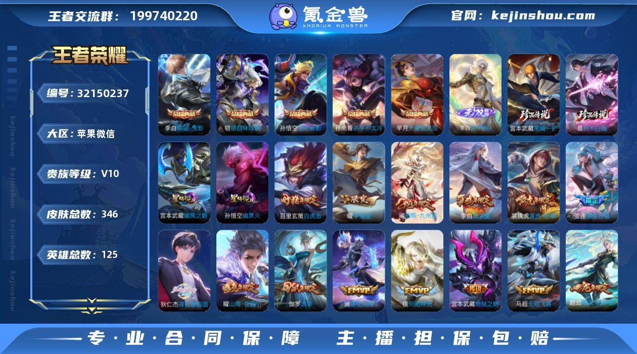 NX6000 苹果微信 V10 346皮 5典藏2星元 金标孙悟空/暃/铠 1无双2珍品传说41传说122限定 27按键 3天幕 打野43段 全能选手 7842星币 791英雄碎片 220皮肤碎片 573亲密玫瑰 19印记 2荣耀印记 营地号:542560622【荣耀典藏】全息碎影,鸣剑·曳影,杀手不太冷,大秦宣太后,银·白咏叹调, 【星元皮肤】幽冥之眼,幽冥火, 【热门限定】愿照·九州拓,逐花归海,落雪白狼,凤求凰,至尊宝,乘龙·铭钟鼎,白虎志,青龙志,瑞麟志,李逍遥,梅西,影龙天霄,琥珀纪元伽罗,琥珀纪元铠,零号·赤焰,武陵仙君,寅虎·赤拳,默契交锋女,引擎之心,淬星耀世,无尽星芒,时之祈愿男,岱宗,太华,飞衡,一生所爱,大圣娶亲,魔法小厨娘,百木心枪,挚爱之约,山海·苍雷引,齐天大圣,鹤归松栖男,鹤归松栖女,启明星使,埋骨钱,逐霄战戟, 【限定传说】拒霜思,猫狗日记男,猫狗日记女,电玩小子,云鹰飞将,孙行者,猫影幻舞,地狱火,地狱之眼,苍穹之光,时之恋人女,诗语江南,修罗,冠军飞将,无双飞将,龙骑士,梁祝,未来纪元,炽阳神光,绛天战甲,黄金白羊座,黄金射手座,天秀·启明,黄金分割率,超时空战士,晚萤,千年之狐,末日机甲男,怒海麟威,原初探秘者,原初追逐者,夜礼服假面,黎明之约,暗隐猎兽者,水晶猎龙者,战鼓燎原,金属风暴,地狱岩魂,特工魅影,曙光守护者,白龙吟,幻光神枪,圣诞恋歌,青蛇,舞动绿茵,嘻哈天王,逐浪之夏,心灵战警,紫霞仙子,功夫厨神,心灵骇客,幽灵船长,乘风破浪,圣诞狂欢,星夜王子,赏金猎手,节奏热浪,天才门将,绅士熊喵,暗夜贵公子,偶像歌手,街头霸王,箭羽风息,乐园奇幻夜,摇滚巨星,缤纷独角兽,星空之诺,鬼剑武藏,朔望之晖,赤莲之焰,银河之约,猎兽之王,职棒王牌,死神来了,冰冠公主,单词大作战,花好人间,烛龙,御狮,御霄,御旌,朔风刀,混沌棋,疑决卦,醍醐杖,万华元夜,拳王,女仆咖啡,敏锐之力,丁香结,科学大爆炸,炽阳神光,赏金猎手,诗剑行,