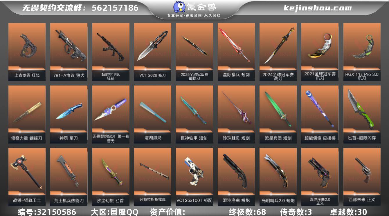 【WWC1567】终极*68/传奇*3/卓越*30/皮肤*232/等级*209/段位:神话/2025全球冠军赛/2024全球冠军赛套装/2021全球冠军赛套装/VCT 2026 赛季套装/混沌序曲//2.0套装/RGX 11z Pro//3.0套装/混沌序曲套装/千灵华绽套装/光明哨兵//2.0套装/掠影2.0套装/盖亚的复仇//2.0套装/天界神兵套装/掠影套装/幻棱/炼狱/维斯/暮蝶/钛狐/壹决/铁臂/捷风/雷兹/幽影/不死鸟/贤者/猎枭/蝰蛇/零/芮娜/奇乐/尚勃勒/霓虹/斯凯/夜露/星礈/K/O/海神/盖可/黑梦/钢锁/2025全球冠军赛 蝴蝶刀/战刀-2024全球冠军赛/爪刀-2021全球冠军赛/近战武器-碎心裂刃/VCT 2026 篆刀/混沌链枷/魔术火花/影钩/苦无-无畏契约GO!第一卷/蝴蝶刀-侦察力量/剥皮小刀/紫金爪刀/爪刀-RGX 11z Pro 3.0/落英飞旋/威龙之刃/澄湖潋滟/短剑-巨神铁甲/短剑-珍珠棘贝/混沌大剑/短剑-流星兵团/超能偶像 应援棒/匕首-超限闪存/盖亚之愠/战锤-钢轨卫士/荒土机兵热能刀/匕首-沙尘幻旅/军刀-神罚/圣石匕首/天玄刀/影刃/阿特拉斯指挥部/星际猎兵 短剑/2025全球冠军赛 狂徒/狂徒-2021全球冠军赛/狂徒-归零者/狂徒-混沌序曲/狂徒-机动狂飙/狂徒-塑水宗/狂徒-偃月苍龙/狂徒-超时空卫队/狂徒-堕天遗武/狂徒-掠影/狂徒-盖亚的复仇/狂徒-耀鳞威龙/狂...