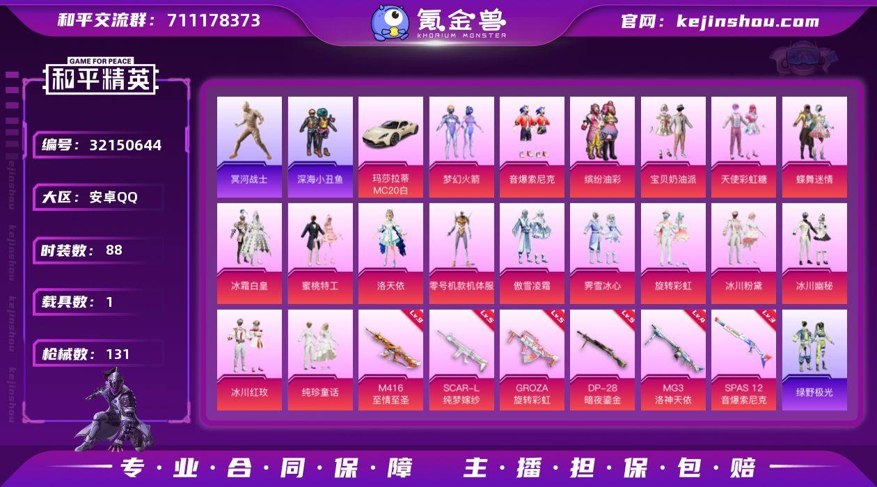 安卓【素材号 梦幻火箭/木乃伊/缤纷油彩/角色-零号机款机体服/角色-洛天依/M416-至情至圣(九级)/玛莎拉蒂MC20(星石白)/百万伏特背包(2级)】 手Q-17粉装-8特效枪-1载具-3粉色飞行器-46186热力值-3王牌印记-88套装-131枪皮 【热门品类】:粉装-梦幻火箭,粉装-音爆索尼克,粉装-缤纷油彩,套装-冥河战士,套装-深海小丑鱼,套装-龟仙人 【粉色套装】:粉装-宝贝奶油派,粉装-天使彩虹糖,粉装-蝶舞迷情,粉装-梦幻火箭,粉装-缤纷油彩,粉装-冰霜白皇,粉装-蜜桃特工,角色-洛天依,角色-零号机款机体服,粉装-傲雪凌霜,粉装-霁雪冰心,粉装-旋转彩虹,粉装-冰川粉黛,粉装-冰川幽秘,粉装-冰川红玫,粉装-音爆索尼克,粉装-纯珍童话 【粉色枪皮等级】:SCAR-L-纯梦嫁纱(五级),M416-至情至圣(九级),GROZA-旋转彩虹(五级),ACE32-萌骑漫游(三级),Mk14-福马献瑞(一级),SPAS-12-音爆索尼克(三级),DP-28-暗夜鎏金(五级),MG3-洛神天依(四级) 【粉色载具】:玛莎拉蒂MC20(星石白) 【粉色枪皮】:SCAR-L-纯梦嫁纱,M416-至情至圣,GROZA-旋转彩虹,ACE32-萌骑漫游,Mk14-福马献瑞,SPAS-12-音爆索尼克,DP-28-暗夜鎏金,MG3-洛神天依 【粉色飞行器】:梦幻火箭飞行器,太空嘟嘟飞行器,歌者泠鸢飞行器 【粉色降落伞】:甜心宝贝降落伞,梦幻火箭降落伞,童趣迷兔降落伞,洛神天依降落伞,环太平洋降落伞,暖熊萌萌降落伞,绒雪飘舞降落伞,垂柳戏鸭降落伞,旋转彩虹降落伞,冰川粉黛降落伞,桃夭倾城降落伞,暗夜鎏金降落伞,苔丝玫瑰降落伞,音爆索尼克降落伞,仲夏莫吉托降落伞,未来歌姬降落伞 【稀有套装】:套装-龟仙人,套装-马上来财,套装-雨过天青,套装-红釉青花 【稀有枪皮】:AKM-春暖花开,AKM-环太平洋,M16A4-冥河战士,M16A4-幻世战舞者,M16A4-甜心亚梦,M16A4-千金淑猫,SCAR-L-夜灯,SCAR-L-...