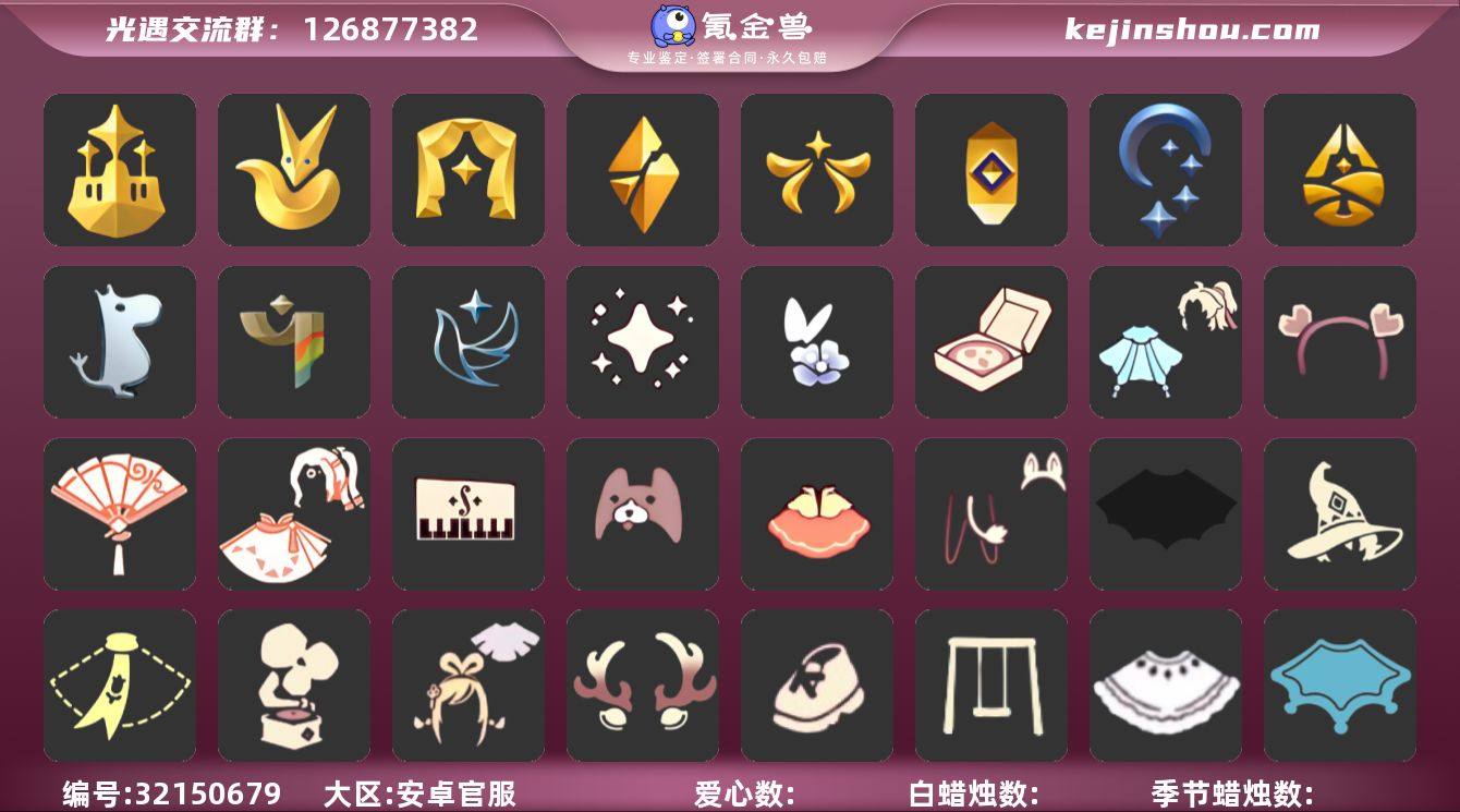 账号类型: 手机账号 季节已毕业: 梦想季,小王子季,表演季,破晓季,欧若拉季,夜行季,追忆季,归巢季,姆明季,彩染季,青鸟季 完成地图: 霞谷,暮土,禁阁 珍稀物品: 白枭,透明蝶翼斗,玫瑰花 礼包: 蝙蝠套,巫师,围巾,音乐桌,绊爱,鹿角,运动鞋,秋千,白绒金,瑞雪,福娃,吉他,橘子,贝壳,黄伞,红伞,兔子,南瓜,枯角,雪花,鲤鱼,星月头饰,彩虹耳钉,彩虹耳机,四叶草,暗彩装扮,新年耳钉,龙纹斗,创始人,日光耳环,姆明饰品套装,妮妮斗篷,衔福献瑞礼包,献瑞折扇礼包,心心相印发饰礼包,小狗周年发饰,立式钢琴礼包,必胜客联动分享披萨背饰礼包,青衫落拓礼包,蝴蝶与花发饰礼包,记忆水晶礼包 裤子: 武士裤,背带裤,白棉裤,搓澡巾 面具: 黄鼠狼,红狐狸 面饰: 红耳机 项链: 围巾 发型: 蝴蝶结,正太,樱花,公主头,虚荣,猫耳,白枭 头饰: 花环 斗篷: 白金,红金,白鸟斗,花瓣斗篷,荧蓝斗篷 配饰: 雨伞,高音钢琴,吉他,笛子