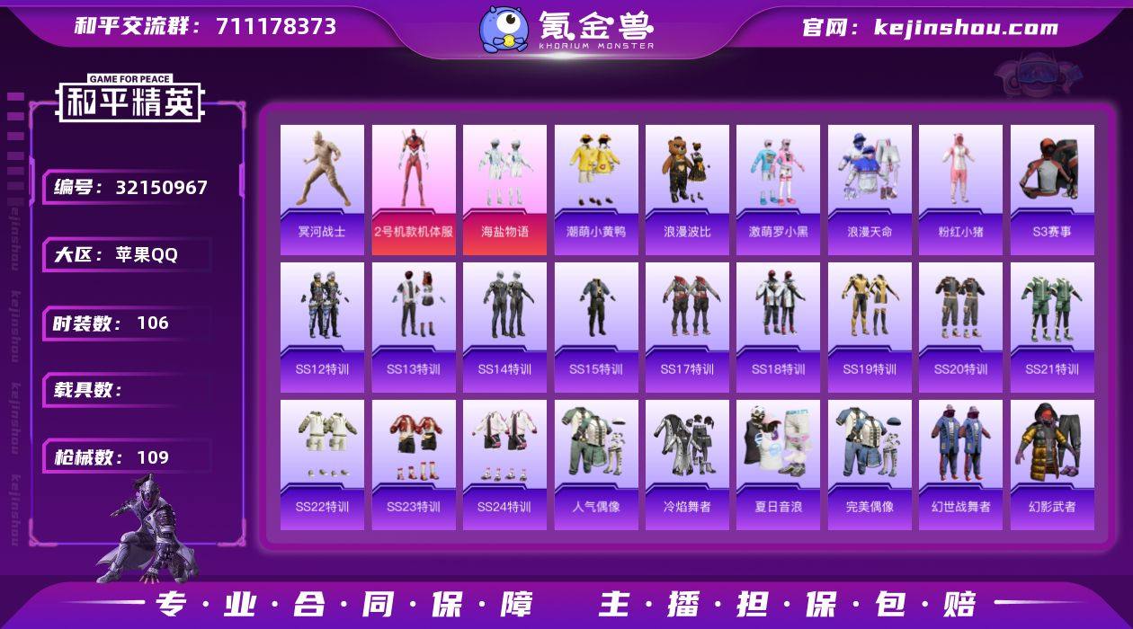 YZJ15428-可二次-苹果Q-2稀有2粉装9热门【身法素材号 木乃伊 灰太狼 小黄鸭 浪漫波比 激萌罗小黑 甜蜜菠萝 银白舞王 明日香款战斗服 真嗣款战斗服 艾伦沃克 狂沙 天命 M4潮汐统领 灰熊背包】106套装109枪皮 31115热力值 5印记 历史超级王牌14星 【2稀有】 木乃伊 浪漫天命 【2粉装】 红螳螂 海盐物语 【9热门】 潮萌小黄鸭 激萌罗小黑 浪漫波比 粉红小猪 狂沙舞者 破蛋小黄鸡 风华少年志 极速红龙 AKM-奇异狩猎者 【1背包】 酷熊伴侣背包 营地ID:338074735