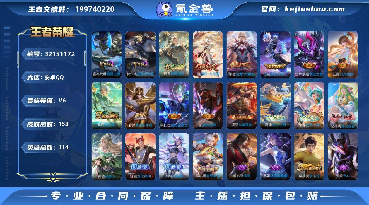 安卓Q-V6-最强王者段位-114英雄-153皮肤-1无双-10传说-38史诗【英雄全皮】:影全皮【无双皮肤】:李信问心剑【传说皮肤】:后羿神树通天,澜愿照九州拓,云缨幻光神枪,桑启鸣野蒿,澜逐花归海,李信山海炽霜斩,铠绛天战甲,后羿黄金射手座,宫本武藏地狱之眼,狄仁杰超时空战士【限定皮肤】:姜子牙天穹之誓,狄仁杰阴阳师,赵云皇家上将,孙尚香蔷薇恋人,元歌无心,狄仁杰魔术师,项羽海滩派对,百里玄策原初追逐者,裴擒虎李小龙,裴擒虎擒涛扼浪,李信山海炽霜斩,鲁班大师探海日志,桑启海盐诗旅,张良古海寻踪,鬼谷子天穹祈灯,姬小满妄想食味,沈梦溪龙舞盛年,刘邦剑破天穹,程咬金群星魔术团,周瑜熔金海岸【年限皮肤】:李信山海炽霜斩,澜愿照九州拓【赛季限定】:桑启海盐诗旅,裴擒虎擒涛扼浪,鲁班大师探海日志,张良古海寻踪,鬼谷子天穹祈灯,刘邦剑破天穹,姜子牙天穹之誓,东皇太一噬灭天穹,太乙真人谧流熔炉,钟馗虚灵犬护,甄姬逆浪荇歌,亚瑟荣光之誓,百里玄策原初追逐者,牛魔星界战将,项羽九幽镇关【战令限定】:廉颇撼地雄心,周瑜线条小狗,小乔线条小狗【史诗皮肤】:明世隐百晓客,周瑜线条小狗,小乔线条小狗,项羽九幽镇关,百里玄策罗小黑战记,公孙离涂山容容,西施织梦人,狂铁龙之律动,阿轲化蝶舞,牛魔星界战将,廉颇撼地雄心,姬小满妄想食味,元歌无心,裴擒虎李小龙,百里玄策原初追逐者,橘右京修罗,狄仁杰鹰眼统帅,阿轲节奏热浪,白起星夜王子,百里守约特工魅影,安琪拉心灵骇客,雅典娜冰冠公主,亚瑟心灵战警,兰陵王暗隐猎兽者,小乔缤纷独角兽,夏侯惇乘风破浪,张飞乱世虎臣,曹操幽灵船长,墨子金属风暴,妲己女仆咖啡,妲己魅力维加斯,嬴政摇滚巨星,孙尚香水果甜心,孙尚香蔷薇恋人,宫本武藏鬼剑武藏,狄仁杰魔术师,甄姬冰雪圆舞曲,赵云未来纪元,...