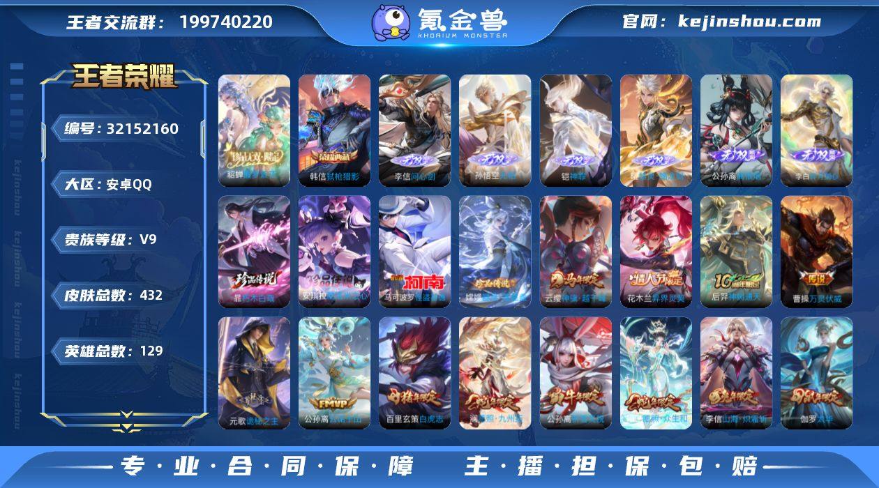 【4898】安卓Q-V9-最强王者段位-129英雄-432皮肤-1典藏皮肤-1典藏英雄-1珍品无双-6无双-4珍品传说-47传说-136史诗 【英雄全皮】:元歌全皮,孙权全皮,娜可露露全皮,鬼谷子全皮,李信全皮,上官婉儿全皮,嫦娥全皮,敖隐全皮,海月全皮,戈娅全皮,空空儿全皮,影全皮,海诺全皮 【荣耀典藏】:武则天英雄,韩信弑枪猎影 【珍品无双】:貂蝉馥梦繁花 【无双皮肤】:李信问心剑,孙悟空无相,铠神罪,曜器灵螭龙剑,公孙离离恨烟,李白碎月剑心 【珍品传说】:暃朽木白哉,安琪拉酷洛米之心,嫦娥器灵落星盏,马可波罗怪盗基德 【传说皮肤】:云缨神骥越千峰,花木兰异界灵契,后羿神树通天,曹操万灵伏威,元歌诡秘之主,公孙离云诺千山,妲己愿照众生和,澜愿照九州拓,云缨幻光神枪,裴擒虎祥瑞亨通,桑启鸣野蒿,海月金乌负日,貂蝉曦玄引,澜逐花归海,兰陵王影龙天霄,上官婉儿妄想奇谈,东皇太一灼幽烈阳,诸葛亮鹤羽星尊,干将莫邪画中仙,孙悟空齐天大圣,李信山海炽霜斩,李白诗剑行,百里守约碎云,娜可露露前尘镜,马超无双飞将,大乔挚爱花嫁,赵云淬星耀世,小乔音你心动,公孙离祈雪灵祝,铠绛天战甲,镜炽阳神光,虞姬启明星使,孙悟空零号赤焰,曜云鹰飞将,李信一念神魔,刘备时之恋人,伽罗太华,干将莫邪久胜战神,达摩黄金狮子座,百里玄策白虎志,花木兰冠军飞将,杨戬永曜之星,貂蝉仲夏夜之梦,孙尚香末日机甲,宫本武藏地狱之眼,孙悟空地狱火,武则天海洋之心 【限定皮肤】:公孙离离恨烟,蔡文姬夏日便利店,虞姬夏日便利店,姜子牙天穹之誓,杨戬破阵退雄兵,狄仁杰阴阳师,赵云皇家上将,赵云引擎之心,高渐离玩趣恶龙,阿轲迷踪丽影,扁鹊奇幻香踪,芈月白晶晶,吕布御风骁将,元歌云间偶戏,元歌无心,典韦岱宗,马可波罗暗影游猎,狄仁杰魔术师,狄仁杰万华元夜,达摩沙漠行僧,...