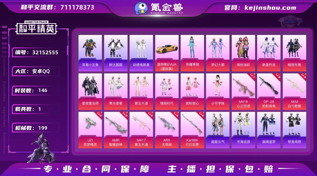 【小姐姐号!新101 猪妹 番茄 双马尾 胖达 哥特 国宝头 满级心之恋语】【连体王者162皮肤-1典藏皮肤-1无双-4传说-36史诗】YXc27051-【无二次协助处理】【因赛季更新游戏段付以上号为准!】 安卓Q-1稀有2载具11粉装11特效枪16热门146套装199枪皮 6w热力值 10印记 历史卓越王牌18星 【1稀有】 浪漫天命 【2载具】 路特斯EV黄色 萌兔起飞僚机 【11粉装】 梦幻火箭 异瞳寒姬 瑰丽时代 飒粉甜心 小可学妹 缤纷油彩 第五大道 新星烈龙 星夜魔法师 暗夜玫瑰 寒光使者 【11特效枪】 M416-心之恋语 (7级) AKM-白勺歌姬 (5级) AKS-74U-森灵之息 (5级) Kar98K-巳巳如意 (4级) DP-28-豹影疾电 (5级) ARX-无垠阁 (4级) AMR-智耀战神 (5级) UZI-筑梦精灵 (5级) M417-第五大道 (5级) AKS-74U-森灵之息 (5级) Mk14-福马献瑞 (2级) 【16热门】 龟仙人 红熊茄茄 动感兔斯基 呆萌铁蟹 鹰眼刺客 深海小丑鱼 大橘为重 浪漫波比 胖达圆圆 暗影哥特 粉红小猪 漫步者 抹茶蜜豆 破蛋小黄鸡 军刀雅典娜 AKM-奇异狩猎者 【1飞行器】 星夜魔法师飞行翼 【2头盔】 国宝胖达头盔 夏日绵绵冰头盔 【1背包】 神秘黑猫背包