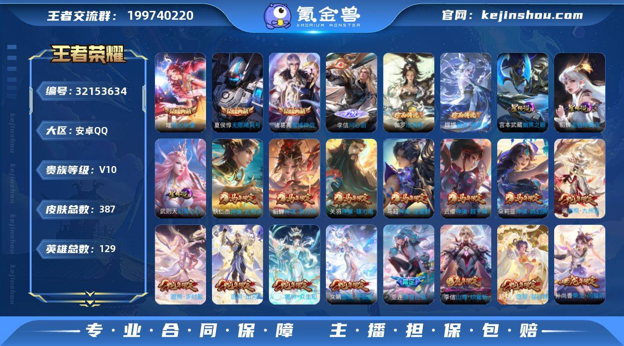 【FTWZ11-带234点卷 1传说天幕3星传说2942星币】安卓Q-V10-至尊星耀I段位-129英雄-387皮肤-3典藏皮肤-1典藏英雄-1无双-2珍品传说-66传说-105史诗【英雄全皮】:孙权全皮,娜可露露全皮,橘右京全皮,李信全皮,敖隐全皮,夏洛特全皮,司空震全皮,金蝉全皮,赵怀真全皮,空空儿全皮,影全皮,海诺全皮【荣耀典藏】:武则天英雄,夏侯惇无限飓风号,诸葛亮星域神启,瑶拾光映像【无双皮肤】:李信问心剑【珍品传说】:伽罗沧流箭,嫦娥器灵落星盏【传说皮肤】:云缨神骥越千峰,关羽神骥镇沧海,朵莉亚神骥鸣幻洲,狄仁杰神骥赴朔漠,貂蝉神骥聚万邦,马超神骥逐星野,司空震愿照山河定,女娲愿照千秋盛,妲己愿照众生和,澜愿照九州拓,蔡文姬愿照福禄聚,虞姬愿照岁时盈,云缨幻光神枪,裴擒虎祥瑞亨通,嬴政玄雷天君,墨子黄金天蝎座,亚连落雪白狼,吕布曦玄引,孙尚香乘龙问璇玑,艾琳觅芳踪,露娜霜月吟,甄姬至美化雀舞,大乔时之奇旅,鲁班七号时之奇旅,兰陵王影龙天霄,吕布遇见神鼓,宫本武藏惊梅引,云缨鹤归松栖,马可波罗妄想实况,东皇太一灼幽烈阳,澜电玩雷克斯,亚瑟追逃游戏,张飞百相守梦,公孙离记忆之芯,夏洛特浮生妄,花木兰燃星之曲,项羽无限倾心,伽罗炽翼辉光,孙悟空齐天大圣,李信山海炽霜斩,吕布怒海麟威,李白诗剑行,百里守约碎云,橘右京枫霜尽,娜可露露前尘镜,马超无双飞将,孙策挚爱之约,孙策末日机甲,王昭君乞巧织情,西施游龙清影,铠绛天战甲,镜炽阳神光,虞姬启明星使,关羽武圣,曜云鹰飞将,李信一念神魔,刘备时之恋人,张良黄金白羊座,干将莫邪久胜战神,达摩黄金狮子座,梦奇胖达荣荣,后羿黄金射手座,貂蝉仲夏夜之梦,宫本武藏地狱之眼,武则天海洋之心,狄仁杰超时空战士【限定皮肤】:杨戬破阵退雄兵,狄仁杰阴阳师,赵云皇家上将,赵云引擎之心,墨子神...