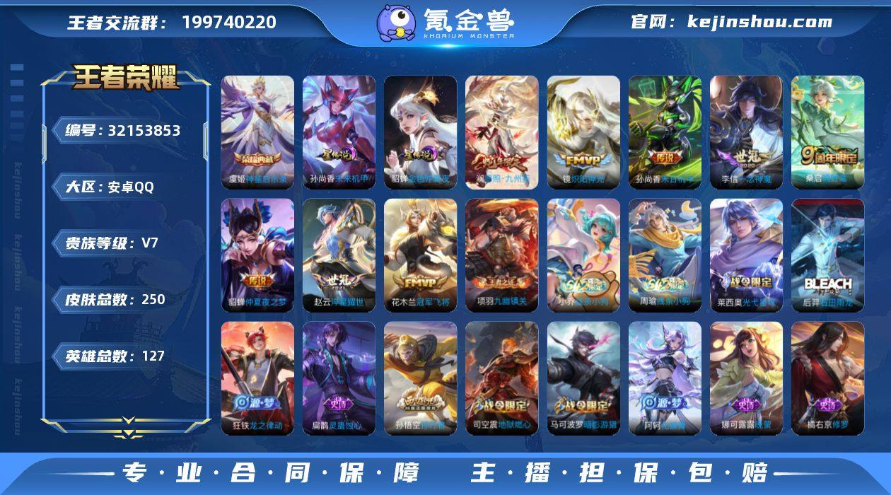 王者19311,不可二次,金标8454孙尚香,3206紫星币,安卓Q-V7-最强王者段位-127英雄-250皮肤-1典藏皮肤-8传说-79史诗 【英雄全皮】:孙权全皮,影全皮 【荣耀典藏】:虞姬神鉴启示录 【传说皮肤】:澜愿照九州拓,桑启鸣野蒿,赵云淬星耀世,镜炽阳神光,李信一念神魔,花木兰冠军飞将,貂蝉仲夏夜之梦,孙尚香末日机甲 【限定皮肤】:蒙犽顽岩魄,蔡文姬夏日便利店,虞姬夏日便利店,姜子牙天穹之誓,杨戬破阵退雄兵,狄仁杰阴阳师,赵云皇家上将,墨子神迹守卫,嬴政优雅恋人,孙尚香蔷薇恋人,庄周高山流水,白起夜都怪侠,夏侯惇朔风刀,马可波罗暗影游猎,狄仁杰魔术师,狄仁杰万华元夜,达摩星际陆战队,达摩沙漠行僧,项羽海滩派对,老夫子醍醐杖,老夫子航海奇遇记,程咬金演武夺筹,韩信逐梦之影,兰陵王金庭之子,孙悟空孙行者,后羿圣弓游侠,李元芳云中旅人,钟馗驱傩正仪,干将莫邪真爱魔法,雅典娜黎明之约,蔡文姬繁星吟游,鬼谷子原初探秘者,鬼谷子五谷丰年,苏烈千军破阵,百里玄策原初追逐者,弈星混沌棋,梦奇顽趣,沈梦溪大漠名商,明世隐疑决卦,裴擒虎李小龙,裴擒虎擒涛扼浪,米莱狄胡桃异想国,猪八戒西部大镖客,上官婉儿梁祝,嫦娥拒霜思,嫦娥暖冬兔眠,西施玲珑珍味,鲁班大师探海日志,桑启海盐诗旅,暃星界游侠,戈娅驭风魔法,艾琳流音漫舞,司空震地狱燃心,张良古海寻踪,蒙恬荣光圣徽,鬼谷子天穹祈灯,伽罗琥珀纪元,刘邦剑破天穹,程咬金群星魔术团,镜青焰无极,项羽苍威无极,周瑜熔金海岸 【年限皮肤】:澜愿照九州拓 【赛季限定】:夏侯惇朔风刀,弈星混沌棋,明世隐疑决卦,老夫子醍醐杖,鬼谷子原初探秘者,狄仁杰万华元夜,程咬金演武夺筹,钟馗驱傩正仪,苏烈千军破阵,达摩沙漠行僧,兰陵王金庭之子,沈梦溪大漠名商,李元芳云中旅人,桑启海盐诗旅,裴擒虎擒涛扼...