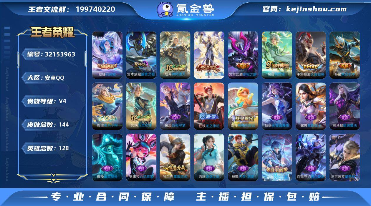 王者19343,2604星币,安卓Q-V4-最强王者段位-128英雄-144皮肤-1典藏皮肤-6传说-29史诗 【英雄全皮】:敖隐全皮,影全皮 【荣耀典藏】:貂蝉幻阙歌 【传说皮肤】:后羿神树通天,司空震愿照山河定,桑启鸣野蒿,孙策末日机甲,干将莫邪久胜战神,宫本武藏地狱之眼 【限定皮肤】:蒙犽顽岩魄,姜子牙天穹之誓,狄仁杰阴阳师,高渐离玩趣恶龙,达摩沙漠行僧,项羽海滩派对,程咬金演武夺筹,兰陵王金庭之子,李元芳云中旅人,钟馗驱傩正仪,苏烈千军破阵,百里玄策原初追逐者,沈梦溪大漠名商,鲁班大师探海日志,桑启海盐诗旅,张良古海寻踪,鬼谷子天穹祈灯,沈梦溪龙舞盛年,刘邦剑破天穹,周瑜熔金海岸 【年限皮肤】:司空震愿照山河定 【赛季限定】:程咬金演武夺筹,钟馗驱傩正仪,苏烈千军破阵,达摩沙漠行僧,兰陵王金庭之子,沈梦溪大漠名商,李元芳云中旅人,桑启海盐诗旅,鲁班大师探海日志,张良古海寻踪,鬼谷子天穹祈灯,刘邦剑破天穹,姜子牙天穹之誓,东皇太一噬灭天穹,太乙真人谧流熔炉,钟馗虚灵犬护,甄姬逆浪荇歌,亚瑟荣光之誓,百里玄策原初追逐者,牛魔星界战将 【战令限定】:刘禅鸭鸭历险记,沈梦溪鸭鸭历险记,周瑜线条小狗 【史诗皮肤】:周瑜线条小狗,女娲万灵启世,黄忠百相守梦,狂铁龙之律动,刘禅鸭鸭历险记,弈星万物之道,牛魔星界战将,马可波罗星界特工,蒙犽顽岩魄,镜玫瑰异探,司马懿暗渊魔法,杨戬天秀启明,西施诗语江南,百里玄策原初追逐者,狄仁杰鹰眼统帅,伽罗箭羽风息,李元芳逐浪之夏,百里守约特工魅影,安琪拉心灵骇客,刘邦德古拉伯爵,张飞乱世虎臣,曹操幽灵船长,妲己魅力维加斯,嬴政摇滚巨星,孙尚香水果甜心,宫本武藏鬼剑武藏,甄姬冰雪圆舞曲,貂蝉圣诞恋歌,赵云未来纪元,露娜紫霞仙子 【其他皮肤】:兰陵王雾影缉谜,虞姬溯影追猎,蚩奼极光幻客,...