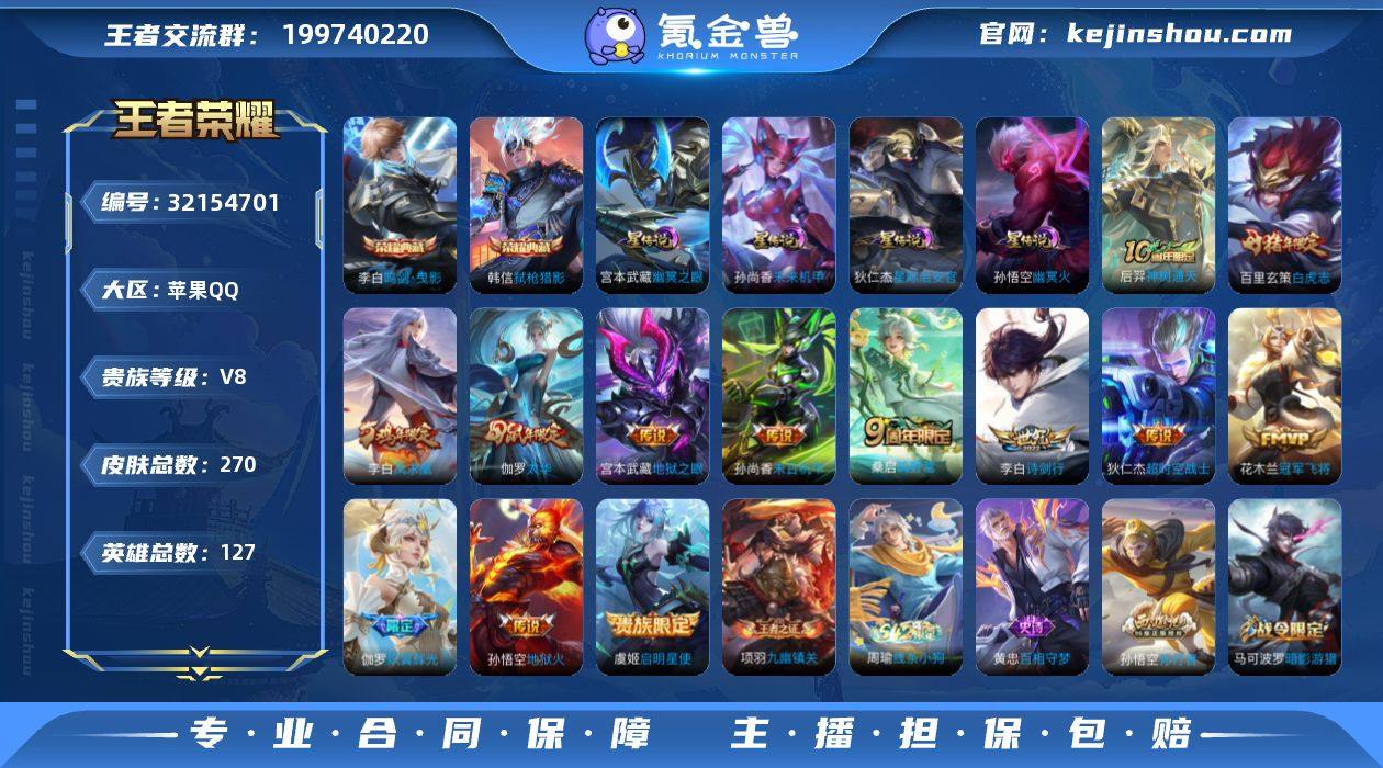 王者19533,苹果Q-V8-最强王者段位-127英雄-270皮肤-2典藏皮肤-13传说-71史诗 【英雄全皮】:孙权全皮 【荣耀典藏】:李白鸣剑曳影,韩信弑枪猎影 【传说皮肤】:后羿神树通天,桑启鸣野蒿,伽罗炽翼辉光,李白诗剑行,虞姬启明星使,伽罗太华,百里玄策白虎志,花木兰冠军飞将,李白凤求凰,孙尚香末日机甲,宫本武藏地狱之眼,孙悟空地狱火,狄仁杰超时空战士 【限定皮肤】:白起狰,姜子牙天穹之誓,狄仁杰阴阳师,赵云皇家上将,嬴政白昼王子,鲁班七号狮舞东方,庄周玄嵩,阿轲迷踪丽影,钟无艳超时空战士,芈月重明,吕布猎兽之王,周瑜赤莲之焰,元歌无心,夏侯惇朔风刀,甄姬落雪兰心,曹操烛龙,曹操天狼征服者,典韦穷奇,马可波罗暗影游猎,狄仁杰魔术师,狄仁杰万华元夜,项羽海滩派对,老夫子醍醐杖,程咬金演武夺筹,刘邦夺宝奇兵,兰陵王驯魔猎人,孙悟空大圣娶亲,孙悟空孙行者,牛魔御旌,李元芳银河之约,李元芳云中旅人,虞姬启明星使,钟馗神迹守卫,钟馗驱傩正仪,女娲朔望之晖,雅典娜单词大作战,蔡文姬繁星吟游,太乙真人饕餮,太乙真人华丽摇滚,鬼谷子原初探秘者,鬼谷子五谷丰年,百里玄策白虎志,百里玄策原初追逐者,弈星混沌棋,梦奇顽趣,沈梦溪星空之诺,沈梦溪大漠名商,明世隐疑决卦,裴擒虎李小龙,裴擒虎擒涛扼浪,狂铁御狮,米莱狄御霄,云中君纤云弄巧,伽罗太华,伽罗炽翼辉光,盾山御銮,猪八戒西部大镖客,上官婉儿梁祝,嫦娥暖冬兔眠,蒙犽狂想玩偶喵,鲁班大师探海日志,桑启海盐诗旅,暃星界游侠,艾琳女武神,阿古朵江河有灵,张良古海寻踪,蒙犽百解令,蒙恬荣光圣徽,妲己灵卜魔法,鬼谷子天穹祈灯,沈梦溪龙舞盛年,鲁班七号蔬乡物语,李元芳蔬乡物语,刘邦剑破天穹,程咬金群星魔术团,镜青焰无极,项羽苍威无极,周瑜熔金海岸 【年限皮肤】:李白凤求凰,百里...