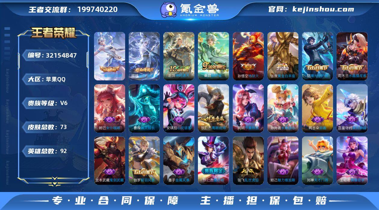 V6 1典藏 73皮肤 92英雄 【1水晶】伽罗-最初的交响【21史诗】阿轲-节奏热浪,安琪拉-心灵骇客,曹操-幽灵船长,妲己-女仆咖啡,妲己-魅力维加斯,狄仁杰-魔术师,狄仁杰-鹰眼统帅,伽罗-箭羽风息,宫本武藏-鬼剑武藏,花木兰-水晶猎龙者,铠-曙光守护者,刘禅-天才门将,墨子-金属风暴,孙尚香-水果甜心,王昭君-偶像歌手,雅典娜-冰冠公主,嬴政-摇滚巨星,张飞-乱世虎臣,赵云-皇家上将,阿古朵-顽趣,百里守约-真我赫兹