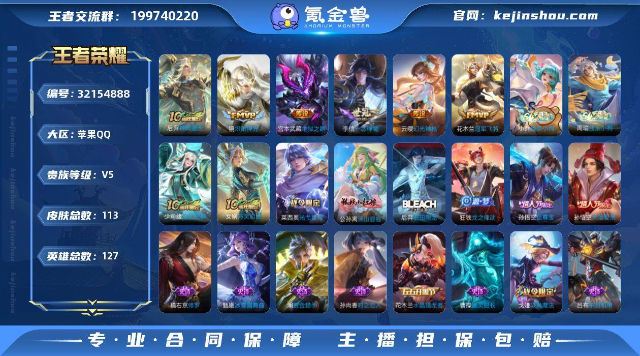 苹果Q 可二次 6传说127英雄113皮肤 神树通天 幻光神枪 炽阳神光 冠军飞将 一念神魔 地狱之眼 万灵启世 巫礼祀神 涂山容容 至尊宝 逐霄之志 大圣娶亲 冰冠公主 梁祝 天秀启明 水晶猎龙者 金属风暴 特工战影 蔷薇恋人 逐浪之夏 心灵战警 修罗 功夫厨神 幽灵船长 乘风破浪 圣诞狂欢 末日机甲男 星夜王子 赏金猎手 节奏热浪 时之恋人女 暗夜贵公子 街头霸王 鬼剑武藏 冰雪圆舞曲 花好人间 拳王 敏锐之力 皇家上将 探海日志 水果甜心 古海寻踪 驭风魔法 江河有灵 顽岩魄 鹰眼统帅 王者荣耀账号