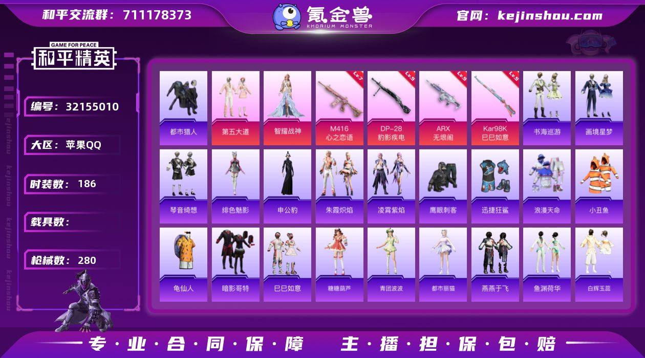 苹果 手Q-4粉装-7特效枪-0载具-1粉色飞行器-75610热力值-14王牌印记-186套装-280枪皮 【热门品类】:套装-浪漫天命,套装-都市猎人,套装-小丑鱼,套装-龟仙人,套装-暗影哥特 【粉色套装】:粉装-第五大道,角色-智耀战神,人物-小舞·灵珑,人物-小舞·雪昙 【粉色枪皮等级】:M416-心之恋语(七级),ARX-无垠阁(五级),UMP45-萌骑冒险(二级),AKS-74U-森灵之息(五级),Kar98K-巳巳如意(五级),Mk14-福马献瑞(五级),DP-28-豹影疾电(五级) 【粉色枪皮】:M416-心之恋语,ARX-无垠阁,UMP45-萌骑冒险,AKS-74U-森灵之息,Kar98K-巳巳如意,Mk14-福马献瑞,DP-28-豹影疾电 【粉色飞行器】:炫彩糖果飞行器 【粉色降落伞】:梦幻火箭降落伞,碧影闪光降落伞,幻彩电音降落伞,荧海星豚降落伞,绯穹魔姬降落伞,炫彩糖果降落伞 【稀有套装】:套装-龟仙人,套装-巳巳如意,套装-雪国风尚,套装-炫彩糖果,套装-马上有钱,套装-糖糖葫芦,套装-青团波波,角色-都市丽猫,套装-燕燕于飞,套装-鱼渊荷华,套装-白辉玉蕊,套装-紫幽梦,套装-蓝冰羽,套装-云朵鹅,套装-雪绒豹,角色-绛羽幽主,角色-夜瞳黯灵,套装-朱霞炽焰,套装-凌霄紫焰,角色-申公豹,角色-绯色魅影,套装-书海巡游,套装-画境星梦,套装-琴音绮想,套装-雨过天青,套装-红釉青花 【稀有枪皮】:AUG-冰晶雪宝,AKM-冰凉西瓜,AKM-夜灯,AKM-彩虹符号,AKM-影袭,AKM-灼热熔岩,AKM-破晓战魂,AKM-萌趣颜团子,AKM-虎虎生威,M16A4-幻世战舞者,M16A4-甜心亚梦,M16A4-红色方程式,M16A4-蓝色火焰,SCAR-L-夜灯,SCAR-L-炫彩节奏,SCAR-L-玉兔迎春,SCAR-L-粉色回忆,SCAR-L-红色方程式,M416-夜灯,M416-神秘黑猫,M416-糯团青竹,M416-红色方程式,M416-蓝色火焰,GROZA-异彩先驱,GROZA-彩虹符号,GROZA-影袭,GROZA-懵萌河马,GROZA-田园牧歌,AUG-...