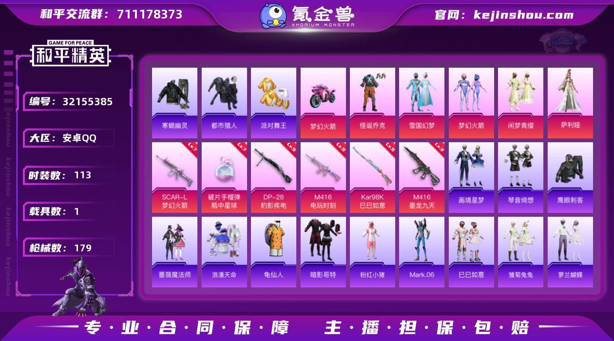 网络男神素材号-安卓 手Q-6粉装-6特效枪-1载具-4粉色飞行器-55569热力值-12王牌印记-113套装-179枪皮QW263811 【热门品类】:粉装-怪诞乔克,粉装-雪国幻梦,粉装-梦幻火箭,套装-寒蝎幽灵,套装-浪漫天命,套装-都市猎人,套装-派对舞王,套装-龟仙人,套装-暗影哥特,套装-粉红小猪,角色-Mark.06 【粉色套装】:粉装-怪诞乔克,粉装-雪国幻梦,粉装-梦幻火箭,粉装-闲梦青缨,角色-萨利娅,角色-虹云熊熊 【粉色枪皮等级】:SCAR-L-梦幻火箭(七级),M416-电玩时刻(五级),M416-墨龙九天(三级),Kar98K-巳巳如意(五级),DP-28-豹影疾电(五级),破片手榴弹-瓶中星球(七级) 【粉色载具】:双人摩托-梦幻火箭 【粉色枪皮】:SCAR-L-梦幻火箭,M416-电玩时刻,M416-墨龙九天,Kar98K-巳巳如意,DP-28-豹影疾电,破片手榴弹-瓶中星球 【粉色飞行器】:梦幻火箭飞行器,超新星飞行器,龙翔九天飞行器,暮色之舞飞行器 【粉色降落伞】:春暖花开降落伞,梦幻火箭降落伞,蜜语绒猫降落伞,墨龙九天降落伞,创世·救赎降落伞,初号机 觉醒Ver.降落伞,临安公主降落伞,星穹咏叹调降落伞,幻彩电音降落伞,荧海星豚降落伞,炫彩糖果降落伞,霁蓝缠春降落伞 【稀有套装】:套装-龟仙人,套装-巳巳如意,套装-马上有钱,套装-雏菊兔兔,套装-萝兰蝴蝶,套装-糖糖葫芦,套装-青团波波,套装-棉花软糖,角色-怀庆长公主,套装-燕燕于飞,套装-鱼渊荷华,套装-粉恋花,套装-紫幽梦,套装-蓝冰羽,角色-瑰梦爱神,套装-彩虹兔,套装-云朵鹅,套装-雪绒豹,角色-灵公主,套装-画境星梦,套装-琴音绮想 【稀有枪皮】:AKM-影袭,AKM-春暖花开,AKM-霓虹街区,AKM-龙的传人,SCAR-L-粉锦千层,GROZA-影袭,GROZA-春暖花开,AUG-2P战斗服款,AUG-天降萌叽,AUG-甜蜜菠萝,AUG-魔法学院,M762-彩虹符号,M762-诡娃娃,M762-云朵鹅,蜜...