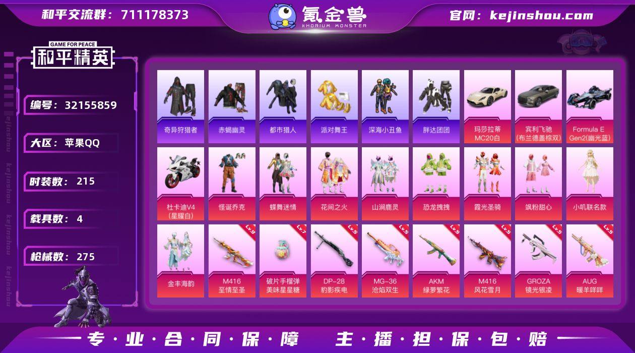 【kyhp935】苹果 手Q-10粉装-14特效枪-4载具-5粉色飞行器-95513热力值-13王牌印记-215套装-275枪皮 【热门品类】:粉装-怪诞乔克,套装-浪漫天命,套装-赤蝎幽灵,套装-都市猎人,套装-派对舞王,套装-深海小丑鱼,套装-小丑鱼,套装-奇异狩猎者,套装-胖达团团,套装-龟仙人,套装-暗影哥特 【粉色套装】:粉装-怪诞乔克,粉装-蝶舞迷情,粉装-花间之火,粉装-山涧鹿灵,粉装-恐龙拽拽,粉装-霞光圣骑,粉装-飒粉甜心,角色-小叽联名款,粉装-金丰海韵,角色-虹云熊熊 【粉色枪皮等级】:AKM-绿萝繁花(五级),AKM-魔法神域(三级),M416-风花雪月(五级),M416-至情至圣(九级),GROZA-镜光银凌(五级),AUG-暖羊咩咩(五级),UMP45-萌骑冒险(二级),AKS-74U-森灵之息(五级),Kar98K-巳巳如意(五级),Mk14-福马献瑞(五级),M417-第五大道(五级),DP-28-豹影疾电(五级),MG-36-沧焰双生(五级),破片手榴弹-美味星星糖(七级) 【粉色载具】:玛莎拉蒂MC20(星石白),宾利飞驰(布罗德盖棕双色),Formula E Gen2(幽光蓝),杜卡迪 Panigale V4(星耀白) 【粉色枪皮】:AKM-绿萝繁花,AKM-魔法神域,M416-风花雪月,M416-至情至圣,GROZA-镜光银凌,AUG-暖羊咩咩,UMP45-萌骑冒险,AKS-74U-森灵之息,Kar98K-巳巳如意,Mk14-福马献瑞,M417-第五大道,DP-28-豹影疾电,MG-36-沧焰双生,破片手榴弹-美味星星糖 【粉色飞行器】:酣梦熊熊飞行器,祥瑞起舞飞行器,沙丘之主天马,繁龙极客飞行器,镜域双华-灵镜之阶 【粉色降落伞】:极限特训降落伞,银河战甲降落伞,甜蜜誓约降落伞,林间仙鹿降落伞,圣光天使降落伞,彩虹甜喵降落伞,暗夜鎏金降落伞,第五大道降落伞,超新星降落伞,小叽联名款降落伞,江南烟雨降落伞,电糖天使降落伞,精灵梦叶罗丽降落伞,鬼刀降落伞,赛博古神降落伞,冷漠罗丽降落伞,小舞降落伞 【...