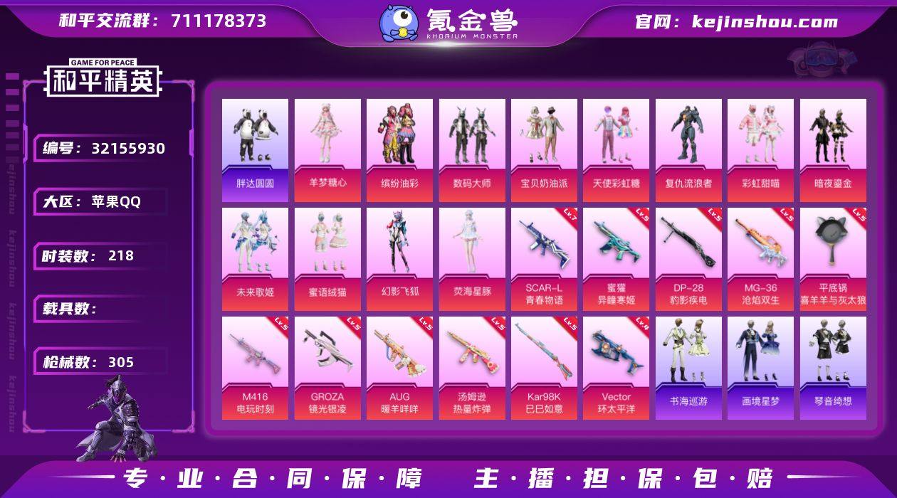 苹果 手Q-13粉装-16特效枪-0载具-4粉色飞行器-99606热力值-18王牌印记-218套装-305枪皮 【热门品类】:粉装-缤纷油彩,角色-军刀雅典娜,套装-胖达圆圆,套装-龟仙人,套装-红熊茄茄 【粉色套装】:粉装-数码大师,粉装-宝贝奶油派,粉装-天使彩虹糖,粉装-缤纷油彩,角色-复仇流浪者,粉装-彩虹甜喵,粉装-暗夜鎏金,粉装-未来歌姬,粉装-蜜语绒猫,粉装-幻影飞狐,角色-荧海星豚,角色-羊梦糖心,角色-虹云熊熊 【粉色枪皮等级】:SCAR-L-青春物语(七级),M416-电玩时刻(五级),GROZA-镜光银凌(五级),AUG-暖羊咩咩(五级),AUG-罪夜之冕(四级),蜜獾-异瞳寒姬(五级),ACE32-萌骑漫游(五级),Vector-环太平洋(四级),汤姆逊-热量炸弹(五级),AKS-74U-森灵之息(五级),Kar98K-巳巳如意(五级),Mk14-福马献瑞(五级),M249-霁蓝缠春(四级),DP-28-豹影疾电(五级),MG-36-沧焰双生(五级),平底锅-喜羊羊与灰太狼(七级) 【粉色枪皮】:SCAR-L-青春物语,M416-电玩时刻,GROZA-镜光银凌,AUG-暖羊咩咩,AUG-罪夜之冕,蜜獾-异瞳寒姬,ACE32-萌骑漫游,Vector-环太平洋,汤姆逊-热量炸弹,AKS-74U-森灵之息,Kar98K-巳巳如意,Mk14-福马献瑞,M249-霁蓝缠春,DP-28-豹影疾电,MG-36-沧焰双生,平底锅-喜羊羊与灰太狼 【粉色飞行器】:绝对恒星飞行器,炫彩糖果飞行器,庄周梦蝶飞行器,幻海精灵飞行器 【粉色降落伞】:绝对恒星降落伞,百万伏特降落伞,甜心宝贝降落伞,春暖花开降落伞,星之彼岸降落伞,甜梦小狐降落伞,荒漠赏金降落伞,环太平洋降落伞,垂柳戏鸭降落伞,未来歌姬降落伞,闲梦青缨降落伞,炫光之旅降落伞,蜜语绒猫降落伞,千金淑猫降落伞,临安公主降落伞,智耀战神降落伞,冷漠罗丽降落伞,荧海星豚降落伞,喜羊羊与灰太狼降落伞,异瞳寒姬降落伞,炫彩糖果降落伞,天马神君降落伞,虹云熊熊降落伞...