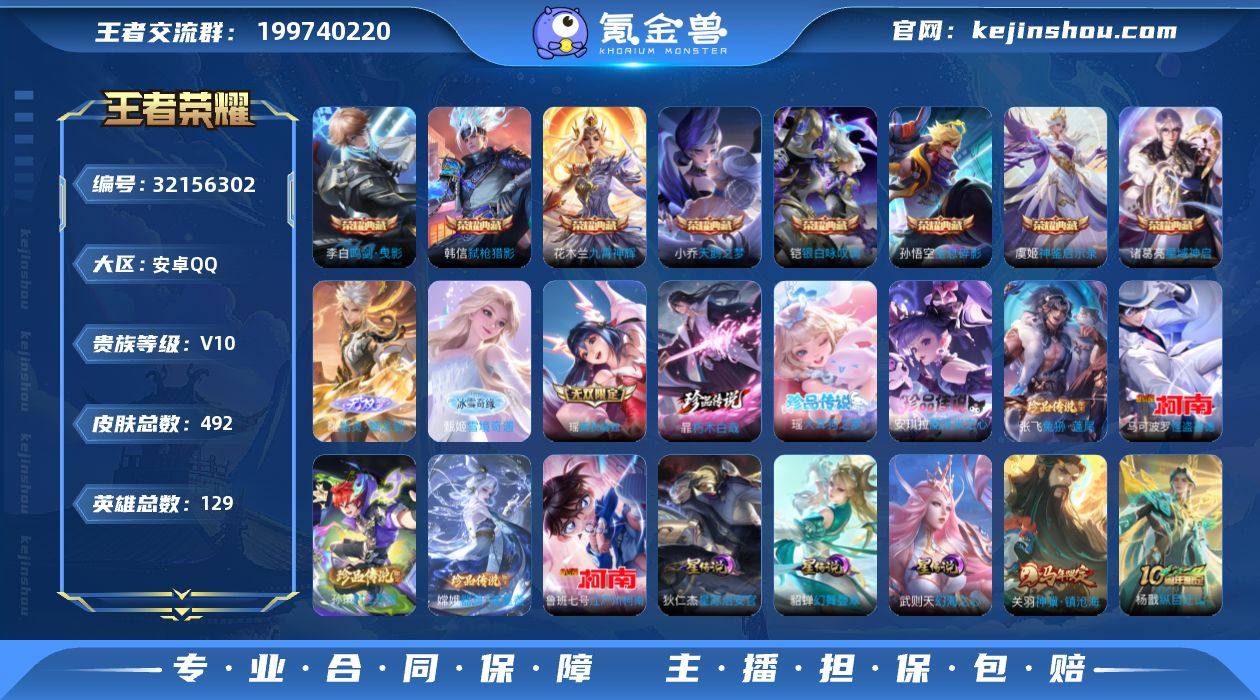 【特价出售/店主推荐/2省标/8市标/50段中路/32段对抗】:安卓Q-V10-最强王者段位-129英雄-492皮肤-8典藏皮肤-1典藏英雄-3无双-4星元-8珍品传说-44传说-162史诗 【英雄全皮】:刘禅全皮,高渐离全皮,孙权全皮,刘备全皮,苍全皮,哪吒全皮,干将莫邪全皮,猪八戒全皮,敖隐全皮,鲁班大师全皮,蒙恬全皮,桑启全皮,夏洛特全皮,司空震全皮,莱西奥全皮,空空儿全皮,影全皮,海诺全皮,姬小满全皮 【荣耀典藏】:武则天英雄,孙悟空全息碎影,小乔天鹅之梦,李白鸣剑曳影,诸葛亮星域神启,花木兰九霄神辉,铠银白咏叹调,韩信弑枪猎影,虞姬神鉴启示录 【无双皮肤】:曜器灵螭龙剑,甄姬雪境奇遇,瑶真我赫兹 【珍品传说】:暃朽木白哉,安琪拉酷洛米之心,瑶大耳狗之梦,张飞兔狲蓬尾,嫦娥器灵落星盏,孙策时之奇旅,鲁班七号江户川柯南,马可波罗怪盗基德 【传说皮肤】:关羽神骥镇沧海,杨戬纵目迁山,后羿神树通天,干将莫邪千山共赴,大司命死亡执政官,公孙离云诺千山,西施续相思,杨玉环星之鸣奏,司空震愿照山河定,女娲愿照千秋盛,妲己愿照众生和,澜愿照九州拓,云缨幻光神枪,裴擒虎祥瑞亨通,嬴政玄雷天君,王昭君映山客,桑启鸣野蒿,典韦战鼓燎原,澜逐花归海,艾琳觅芳踪,宫本武藏惊梅引,东皇太一灼幽烈阳,夏洛特浮生妄,干将莫邪画中仙,项羽无限倾心,李信山海炽霜斩,马超无双飞将,孙策挚爱之约,蔡文姬花朝如约,赵云淬星耀世,曜李逍遥 ,小乔音你心动,镜炽阳神光,虞姬启明星使,李信一念神魔,刘备时之恋人,貂蝉猫影幻舞,张良黄金白羊座,干将莫邪久胜战神,达摩黄金狮子座,花木兰冠军飞将,宫本武藏地狱之眼,武则天海洋之心,狄仁杰超时空战士 【限定皮肤】:虞姬夏日便利店,狄仁杰阴阳师,赵云皇家上将,赵云引擎之心,赵云百木心枪,墨子降魔,庄周高山流水,高渐离死亡...
