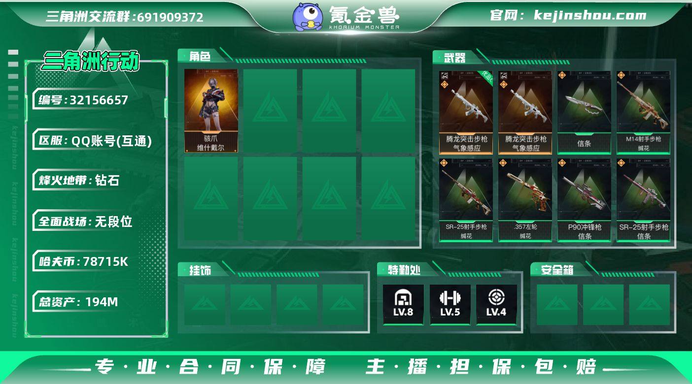 【SJZG4089】总资产(M):194M/哈夫币(K):78715K/哈夫币(K):78715K/传说枪皮数:13/全面战场等级:1_段位:无段位/烽火地带等级:58_段位:钻石/骇爪-维什戴尔/近战-信条/近战-黑鹰/腾龙突击步枪-气象感应/优品C典藏武器外观-腾龙突击步枪-气象感应/SCAR-H战斗步枪-水墨云图/SCAR-H战斗步枪-启航/腾龙突击步枪-捞点薯条/P90冲锋枪-信条/勇士冲锋枪-能天使-午夜邮差/M14射手步枪-缄花/SR-25射手步枪-信条/SR-25射手步枪-缄花/R93狙击步枪-维什戴尔/AWM狙击步枪-捞点薯条/.357左轮-缄花/93R-捞点薯条/AKM突击步枪-林中猎手/MP5冲锋枪-战术竞备/MP5冲锋枪-竞技风/SR-3M紧凑突击步枪-战术竞备/M1014霰弹枪-林中猎手/QJB201轻机枪-炽焰/M700狙击步枪-竞技风/沙漠之鹰-曙光/AKM突击步枪-肃杀/M7战斗步枪-捣蛋鬼/SG552突击步枪-贴花艺术/SCAR-H战斗步枪-童趣/SCAR-H战斗步枪-荣耀列队/MK47突击步枪-冰河潜伏者/P90冲锋枪-黄昏/P90冲锋枪-捣蛋鬼/Vector冲锋枪-先锋/UZI冲锋枪-亚特兰蒂斯/SMG-45冲锋枪-行动开启/SMG-45冲锋枪-天网/M1014霰弹枪-童趣/M250通用机枪-天网/Mini-14射手步枪-荣耀列队/G18-星链科技/G18-哈夫克航天/M4A1突击步枪-粉色涂装/QBZ95-1突击步枪-海色/M16A4突击步枪-高雅黑/SCAR-H战斗步枪-数码迷彩/G3战斗步枪-高雅黑/PTR-32突击步枪-黄蜂/MP5冲锋枪-海色/Vector冲锋枪-几何迷彩/UZI冲锋枪-海色/野牛冲锋枪-高雅黑/PKM通用机枪-变色龙/M249轻机枪-黄蜂/M250通用机枪-条纹/SVD狙击步枪-高雅黑/SV-98狙击步枪-红色涂装/QSZ92G-条纹/沙漠之鹰-海浪/沙漠之鹰-高雅黑/M1911-坚固材料/轮式突击炮-荣耀/挂饰-维什戴尔/信条/阿萨拉狙击兵/阿萨拉霰弹兵/诡异狙击兵/诡异喷火兵/来点薯条/挂饰-启程/挂饰-缄花/挂饰-阿萨拉徽章/挂饰-紧急会议