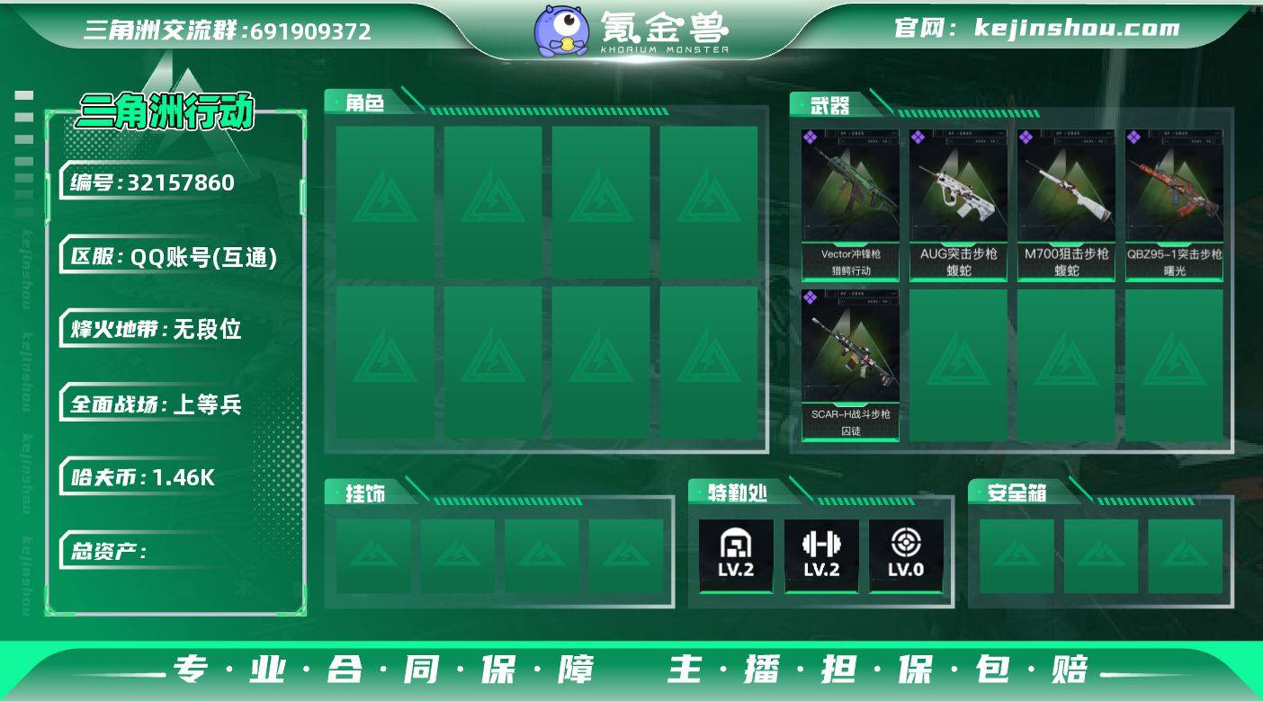 资产(M):3M/哈夫币(K):1461K/哈夫币(K):1461K/传说枪皮数:11/全面战场等级:18_段位:上等兵/烽火地带等级:60_段位:白银/威龙-凌霄戍卫/乌鲁鲁-荒原猎手/近战-暗星/近战-处刑者1级/黑鹰/QBZ95-1突击步枪-凌霄戍卫/AUG突击步枪-悠然茶歇/腾龙突击步枪-马年祥瑞/47突击步枪-悠然茶歇/UZI冲锋枪-悠然茶歇/M14射手步枪-蛮荒/M14射手步枪-缄花/SR-25射手步枪-缄花/AWM狙击步枪-万金泪冠/.357左轮-缄花/G18-马年祥瑞/QBZ95-1突击步枪-曙光/K416突击步枪-冬日风情/K416突击步枪-腊梅/AUG突击步枪-蝮蛇/SCAR-H战斗步枪-囚徒/K437突击步枪-丛影谍踪/Vector冲锋枪-猎鳄行动/SR-3M紧凑突击步枪-开工大吉/勇士冲锋枪-丛影谍踪/MP7冲锋枪-六套之力/PKM通用机枪-蝮蛇/PKM通用机枪-阿萨拉特攻/M249轻机枪-丛影谍踪/M250通用机枪-囚徒/VSS射手步枪-丛影谍踪/M700狙击步枪-蝮蛇/K416突击步枪-一帆风顺/M7战斗步枪-精英联盟/SG552突击步枪-马年新春/ AK-12突击步枪-马年新春/SCAR-H战斗步枪-荣耀列队/PTR-32突击步枪-天网/CAR-15突击步枪-来财/KC17突击步枪-来财/MP5冲锋枪-弄臣/MP5冲锋枪-哈夫克卫队/SMG-45冲锋枪-行动开启/SR-3M紧凑突击步枪-马年新春/勇士冲锋枪-冰天雪地/M1014霰弹枪-幻影结构/M249轻机枪-冰天雪地/QJB201轻机枪-哈夫克卫队/Mini-14射手步枪-荣耀列队/Mini-14射手步枪-来财/SV-98狙击步枪-星链科技/SV-98狙击步枪-哈夫克航天/SV-98狙击步枪-精英联盟/QSZ92G-一帆风顺/SG552突击步枪-彩墨涂鸦/M4A1突击步枪-粉色涂装/M4A1突击步枪-高雅黑/M4A1突击步枪-海色/QBZ95-1突击步枪-高雅黑/QBZ95-1突击步枪-海浪/QBZ95-1突击步枪-海色/QBZ95-1突击步枪-2