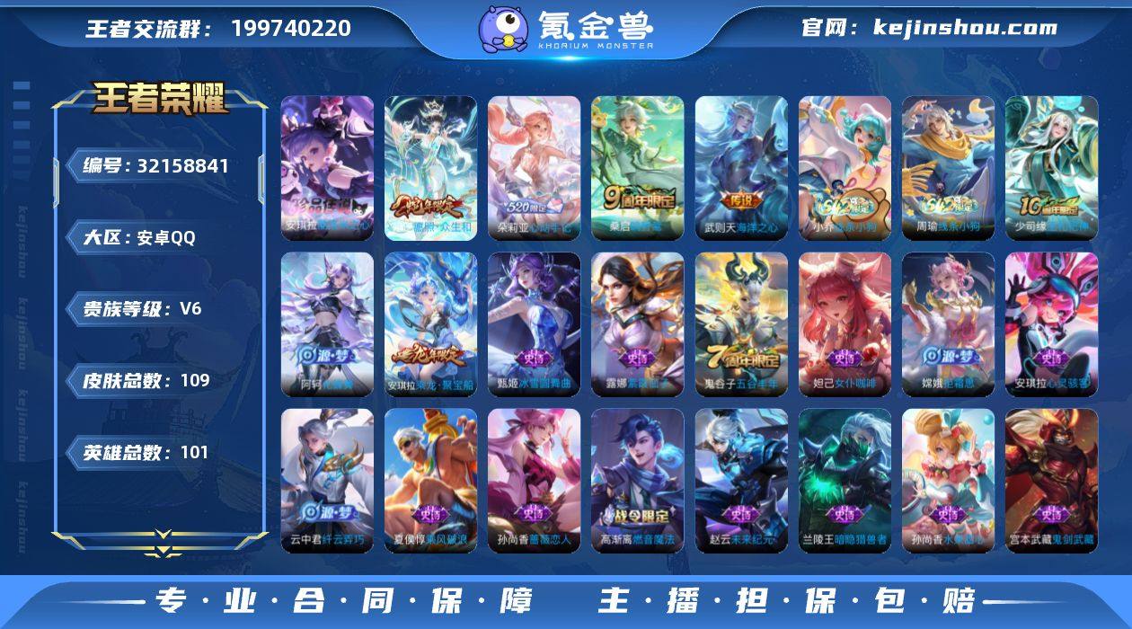 实名: 可修改 性别: 女号 贵族等级: V6 英雄数: 101 皮肤数: 109 珍品传说: 酷洛米之心 传说皮: 海洋之心,朵莉亚心动手记 限定皮: 五谷丰年,鸣野蒿,愿照·众生和 亮点: 【优质装备】:酷洛米之心,海洋之心,朵莉亚心动手记