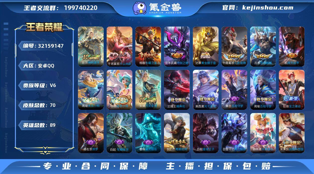 安卓Q-V6-最强王者段位-89英雄-70皮肤-9传说-23史诗【英雄全皮】:孙权全皮【传说皮肤】:关羽神骥镇沧海,后羿神树通天,干将莫邪千山共赴,吕布怒海麟威,铠绛天战甲,干将莫邪久胜战神,达摩黄金狮子座,杨戬永曜之星,宫本武藏地狱之眼【限定皮肤】:狄仁杰阴阳师,赵云皇家上将,狄仁杰魔术师,项羽海滩派对,杨戬永曜之星,米莱狄胡桃异想国,沈梦溪龙舞盛年【年限皮肤】:杨戬永曜之星【赛季限定】:甄姬逆浪荇歌,亚瑟荣光之誓【战令限定】:米莱狄胡桃异想国,周瑜百相守梦,孙策百相守梦,兰陵王傩神司,莱西奥光弋星穹,明世隐往忆晖光,周瑜线条小狗,小乔线条小狗【史诗皮肤】:周瑜线条小狗,小乔线条小狗,女娲万灵启世,兰陵王傩神司,莱西奥光弋星穹,黄忠百相守梦,周瑜百相守梦,狂铁龙之律动,白起苍鳞隐世,哪吒雪上飞焰,米莱狄胡桃异想国,橘右京修罗,狄仁杰鹰眼统帅,孙策猫狗日记,白起星夜王子,李元芳逐浪之夏,百里守约特工魅影,亚瑟心灵战警,刘邦德古拉伯爵,曹操幽灵船长,孙尚香水果甜心,廉颇地狱岩魂,狄仁杰魔术师,赵云皇家上将【其他皮肤】:虞姬溯影追猎,蚩奼极光幻客,曹操逐霄之志,艾琳鹤鸣心笺,孙权径山谋武,明世隐往忆晖光,...