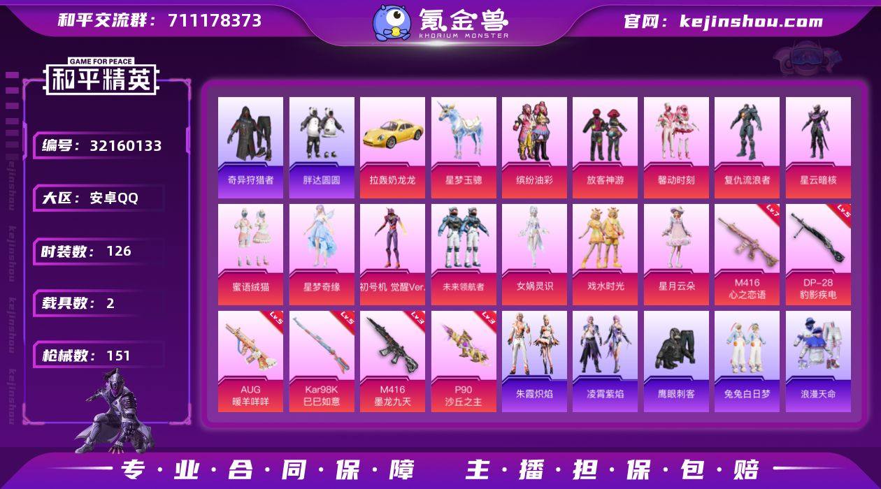 安卓【男神号 粉装-缤纷油彩,套装-胖达圆圆,套装-龟仙人,套装-暗影哥特,套装-粉红小猪,角色-Mark.06,粉装-放客神游,角色-初号机 觉醒Ver.,M416-心之恋语(七级),M416-墨龙九天(三级),AUG-暖羊咩咩(五级),P90-沙丘之主(三级),拉轰奶龙龙,星梦玉骢】 手Q-13粉装-6特效枪-2载具-9粉色飞行器-57935热力值-11王牌印记-126套装-151枪皮 【热门品类】:粉装-缤纷油彩,套装-浪漫天命,套装-奇异狩猎者,套装-胖达圆圆,套装-龟仙人,套装-暗影哥特,套装-粉红小猪,角色-Mark.06 【粉色套装】:粉装-缤纷油彩,粉装-放客神游,粉装-馨动时刻,角色-复仇流浪者,角色-星云暗核,粉装-蜜语绒猫,角色-星梦奇缘,角色-初号机 觉醒Ver.,粉装-未来领航者,角色-女娲灵识,粉装-戏水时光,粉装-星月云朵 【粉色枪皮等级】:M416-心之恋语(七级),M416-墨龙九天(三级),AUG-暖羊咩咩(五级),P90-沙丘之主(三级),Kar98K-巳巳如意(五级),DP-28-豹影疾电(五级) 【粉色载具】:拉轰奶龙龙,星梦玉骢 【粉色枪皮】:M416-心之恋语,M416-墨龙九天,AUG-暖羊咩咩,P90-沙丘之主,Kar98K-巳巳如意,DP-28-豹影疾电 【粉色飞行器】:酣梦熊熊飞行器,炫彩糖果飞行器,祥瑞起舞飞行器,沙丘之主天马,镜域双华-灵镜之阶,龙翔九天飞行器,凤舞九天飞行器,戏水时光飞行器,极意拳锋飞行器 【粉色降落伞】:春暖花开降落伞,心之恋语降落伞,万古烈焰降落伞,蜜语绒猫降落伞,镜域双华降落伞,墨龙九天降落伞,星梦奇缘降落伞,拳皇·狂花道降落伞,临安公主降落伞,月影灵韵降落伞,鬼刀降落伞,赛博古神降落伞,月下星之子降落伞,翎光蝶翼降落伞,戏水时光降落伞,雪月幻音降落伞,幻彩电音降落伞,异瞳寒姬降落伞,炫彩糖果降落伞 【稀有套装】:套装-龟仙人,套装-熊抱抱,套装-炽纹蛇影,套装-航行童话,套装-摩登天骄...