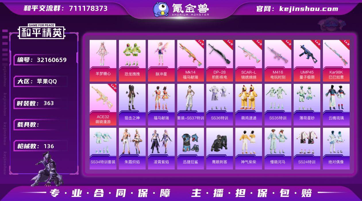 TY697-精品女号-可二次-【羊梦糖心,恐龙拽拽,脉冲星,Mark.06,浪漫天命】【M416电玩时刻(五级)】苹果手Q-3粉装-7特效枪-0载具-2粉色飞行器-40681热力值-6王牌印记-99套装-136枪皮 【热门品类】:套装-浪漫天命,套装-龟仙人,角色-Mark.06 【粉色套装】:粉装-恐龙拽拽,角色-脉冲星,角色-羊梦糖心 【粉色枪皮等级】:SCAR-L-锦绣绵绵(五级),M416-电玩时刻(五级),ACE32-萌骑漫游(二级),UMP45-量子极限(五级),Kar98K-巳巳如意(五级),Mk14-福马献瑞(五级),DP-28-豹影疾电(五级) 【粉色枪皮】:SCAR-L-锦绣绵绵,M416-电玩时刻,ACE32-萌骑漫游,UMP45-量子极限,Kar98K-巳巳如意,Mk14-福马献瑞,DP-28-豹影疾电 【粉色飞行器】:花傲天飞行器,绝色倾城飞行器 【粉色降落伞】:星之彼岸降落伞,暗夜玫瑰降落伞,天星战神降落伞,炎氏战神降落伞,萌酷奶龙降落伞,霓虹漫游降落伞,创世·救赎降落伞,守护天翼降落伞,桃粉嫣然降落伞,雪月幻音降落伞,绯穹魔姬降落伞,炫彩糖果降落伞 【稀有套装】:套装-龟仙人,套装-雏菊兔兔,套装-萝兰蝴蝶,套装-紫幽梦,套装-蓝冰羽,套装-星影赞美诗,套装-朱霞炽焰,套装-凌霄紫焰 【稀有头盔】:精灵迷巫头盔(1级),梦幻火箭头盔(3级) 【营地ID】:947112986