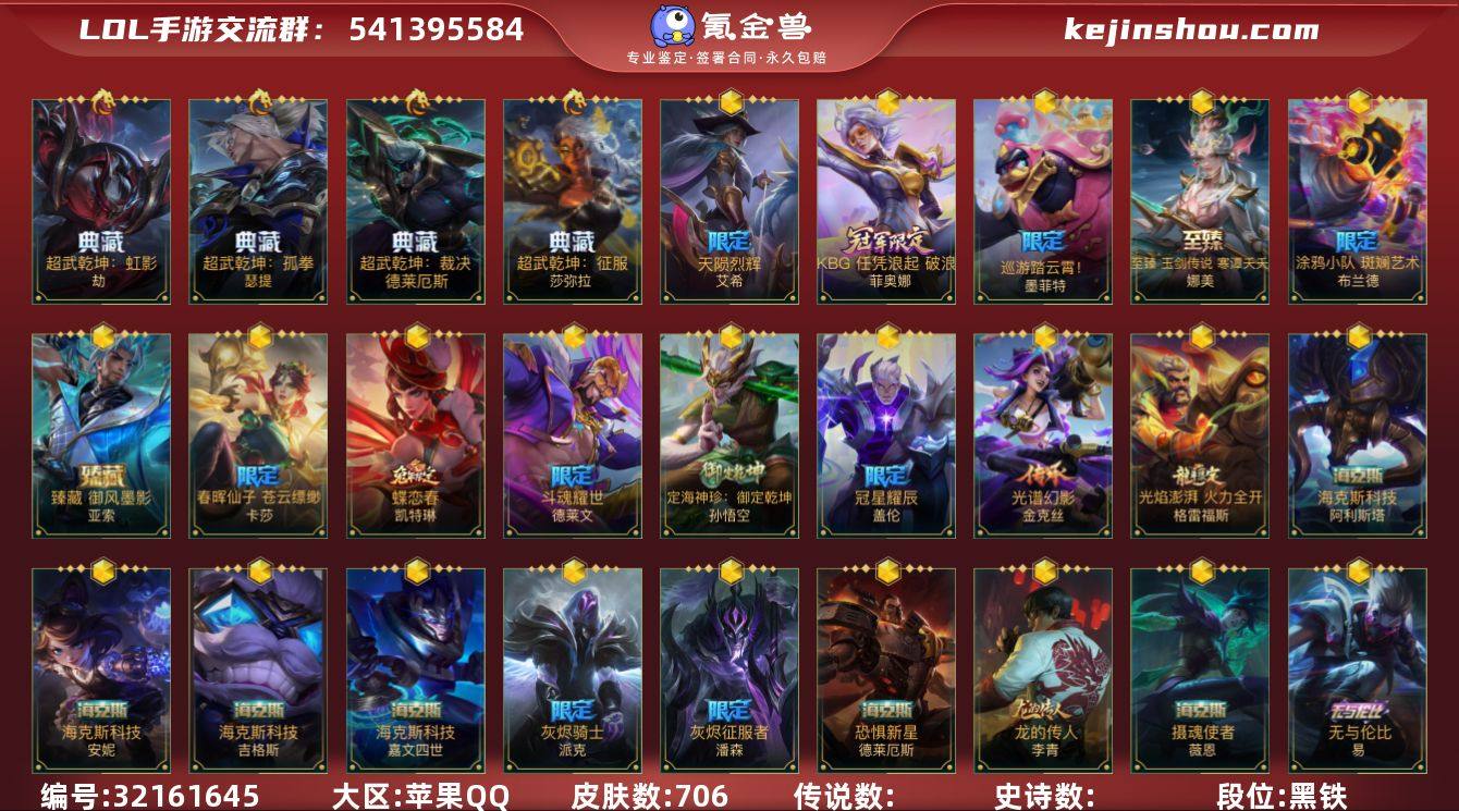 【LSC101】130英雄/706皮肤/傲世宗师/超武乾坤:虹影/超武乾坤:孤拳/超武乾坤:裁决/超武乾坤:征服/冠星耀辰盖伦/臻藏光影巨翼/定海神针:御定乾坤孙悟空/摄魂使者薇恩/至臻 斗魂无双/光谱幻影金克丝/至臻喵喵魅影金克丝/夜星流火 金克丝/星域游侠卡牌圣时豪杰/春晖仙子苍云缥缈卡莎/灰烬征服者潘森/KBG 任凭浪起 破浪 菲奥娜/海克斯安妮/臻藏御风墨影 亚索/渔帆满载 亚索/星之守护者阿狸永绽盛芒/臻藏西部魔影卢锡安/至臻水晶格温/海克斯皇子/银鞍玉甲 嘉文四世/黎明使者 破晓之殇 佛耶戈/龙的传人/乘龙破渊 李青/臻藏 跳跳倩影 厄运小姐/至臻心之钢永恩/无与伦比剑圣/至臻灵魂莲华剑圣/玄龙绛天 易/恐惧新星诺手/火焰澎湃火力全开/斗魂耀世德莱文/天陨烈辉 艾希/海克斯牛头/巡游踏云霄!墨菲特/海克斯炸弹人/至臻 玉剑传说 寒潭夭夭-唤潮鲛姬/至臻锐雯/满弓镇魂 箭无虚发 韦鲁斯/至臻 斗魂无双 艾瑞莉娅/战斗学院EZ白金学长/蝶恋春女警/涂鸦小队斑斓艺术布兰德/海克斯科技 雷克顿/最终BOSS里·大魔王维迦/灰烬骑士派克/地底世界卡牌/广寒仙子嫦娥/穿星魔锋/创星之灵/掠星魔刃/御星魔矢/斩星魔剑/养蜂人/鸡里奥/钢铁军团拉克丝/赵云子龙/冬季仙境发条/耀星女神拉克丝/邪恶圣...