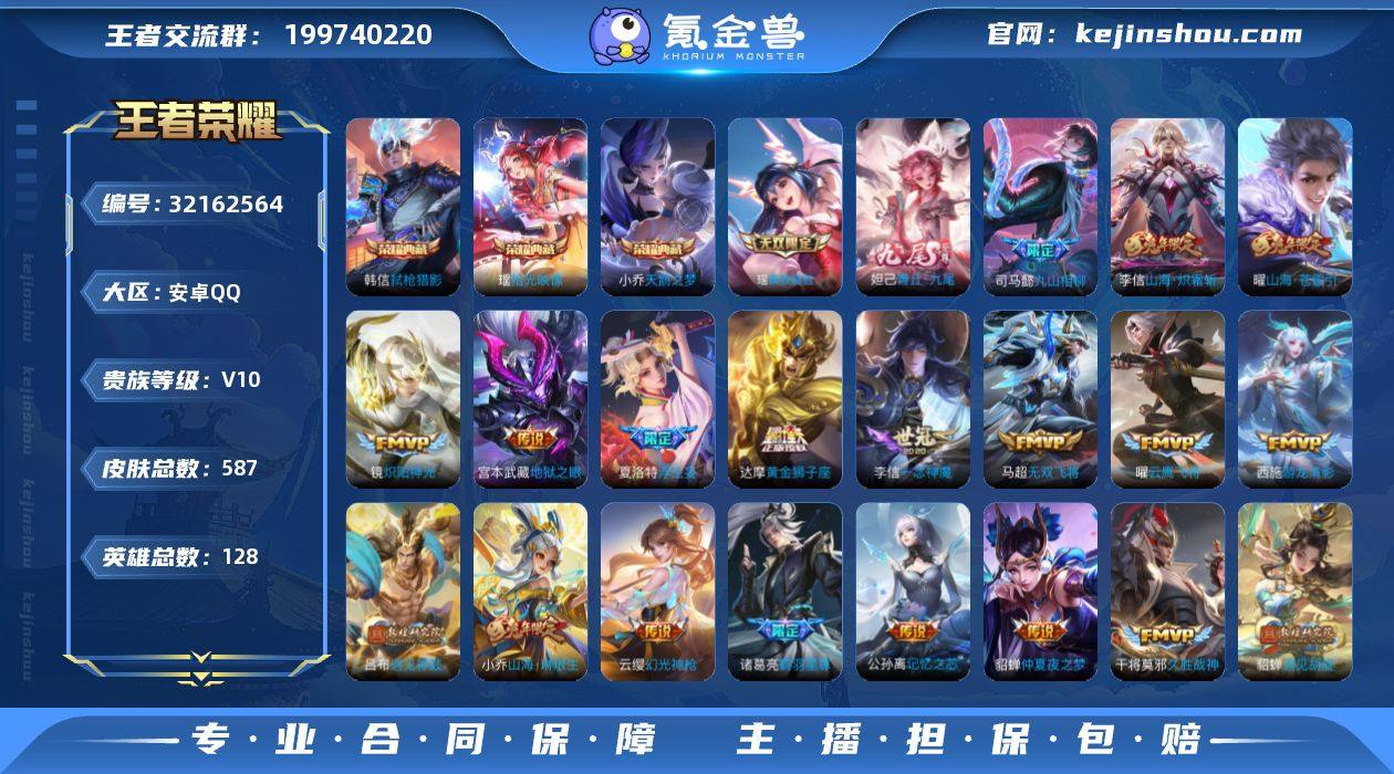 V10 4典藏 2无双 80传说 128英雄 587皮肤 可修改实名 女号 【英雄全皮】少司缘全皮,司空震全皮,镜全皮,云缨全皮,阿古朵全皮,蒙恬全皮,苏烈全皮,太乙真人全皮,元歌全皮,敖隐全皮,蒙犽全皮,空空儿全皮,孙权全皮,蚩奼全皮,黄忠全皮,狂铁全皮,海诺全皮,戈娅全皮,刘邦全皮,明世隐全皮,莱西奥全皮,金蝉全皮,大司命全皮,夏洛特全皮,赵怀真全皮,蔡文姬全皮,猪八戒全皮,司马懿全皮,影全皮,大禹全皮 【稀有英雄】敖隐(小龙人),大司命,嬴政(始皇帝),韩信(韩跳跳),夏洛特(夏师傅),艾琳,橘右京(橘子),娜可露露(鸟人),不知火舞,赵云,金蝉(唐僧),戈娅 【荣耀水晶】颠倒童话·魔镜,拾光映像(瑶典藏),弑枪猎影(韩信典藏),天鹅之梦(小乔典藏) 【无双皮】真我赫兹(瑶)(瑶无双),青丘·九尾(妲己无双) 【传说皮】神骥·越千峰,神骥·鸣幻洲,幻光神枪,诡秘之主,神树通天,千山共赴,死亡执政官,九山相柳,遇见胡旋,游龙清影(小青龙),山海·炽霜斩(李信年限),山海·琳琅生(小乔年限),黄金狮子座,黄金射手座,黄金白羊座,零号·赤焰,地狱火,仲夏夜之梦(大飞蛾),地狱之眼,末日机甲-孙尚香(绿蚂蚱),云霓雀翎,一念神魔,淬星耀世,冠军飞将,久胜战神,猫影幻舞,云鹰飞将(小将军),炽阳神光,无双飞将,音你心动-小乔,音你心动-周瑜,胖达荣荣,乞巧织情,时之恋人-刘备(电焊工),飞鸢探春,绛天战甲(鸡嘴战神),超时空战士-狄仁杰,花朝如约(花篮子),音你闪耀(rap皮),碎云,山海·苍雷引(电光曜子),炽翼辉光(娃娃菜牛角包),燃星之曲,画中仙,浮生妄,记忆之芯(机甲兔),青丘·九尾,百相守梦(张飞),追逃游戏(安琪拉),追逃游戏(亚瑟),电玩·雷克斯,鹤羽星尊,灼幽烈阳,妄想实况,妄想奇谈,鹤归松栖(云缨),遇见神鼓,艾琳觅芳踪,天秀幻梦 【珍宝阁皮】妄想食味,优雅恋人,女武神,玩趣恶龙 【赛季/战令皮】噬灭天穹(s37),古海寻踪(s33),星界游侠,海盐诗旅(s30),擒涛扼浪(s31),潮玩骑...