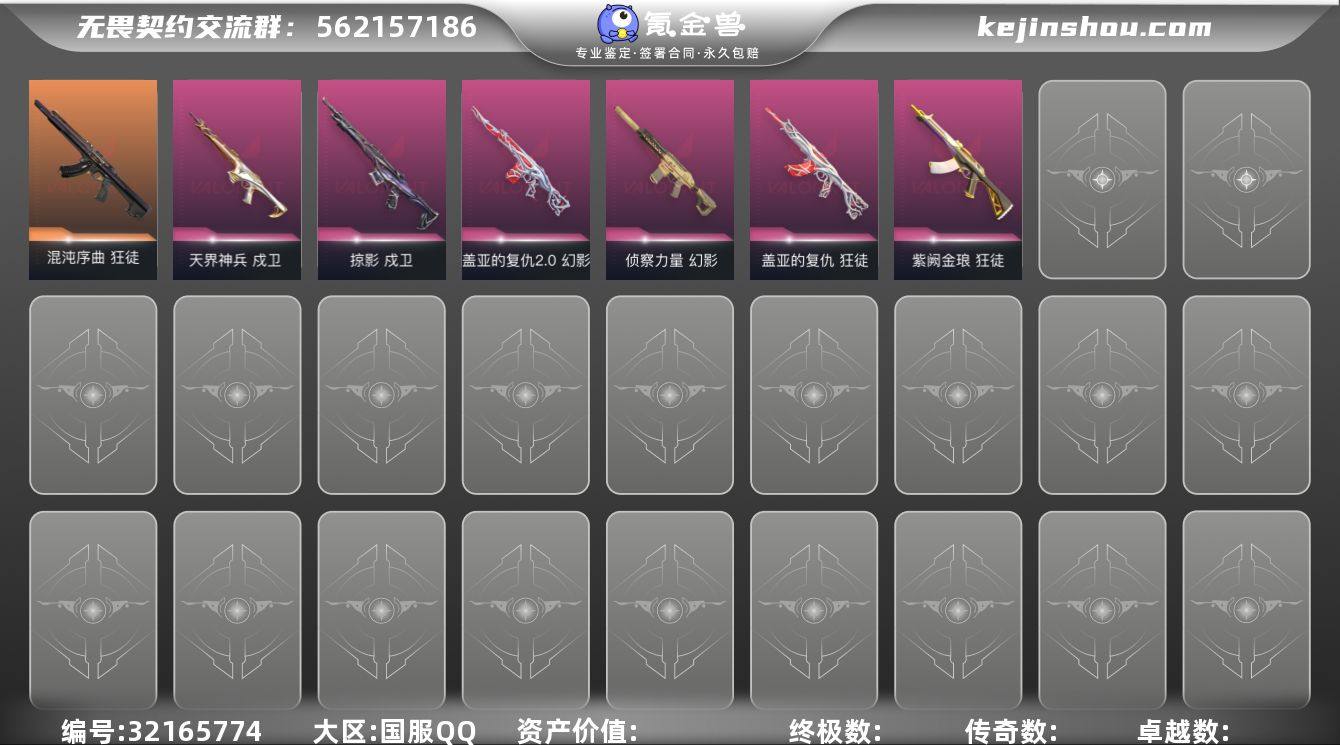 Q193872 【全T0皮肤精氪极品小号】无畏契约/等级44/段位黄金/英雄12/皮肤17/资产9330/已使用R点345/剩余R点45/混沌序曲-狂徒,天界神兵-戍卫,紫阙金琅-狂徒,盖亚的复仇//2.0-幻影,盖亚的复仇-狂徒,侦察力量-幻影,掠影-戍卫