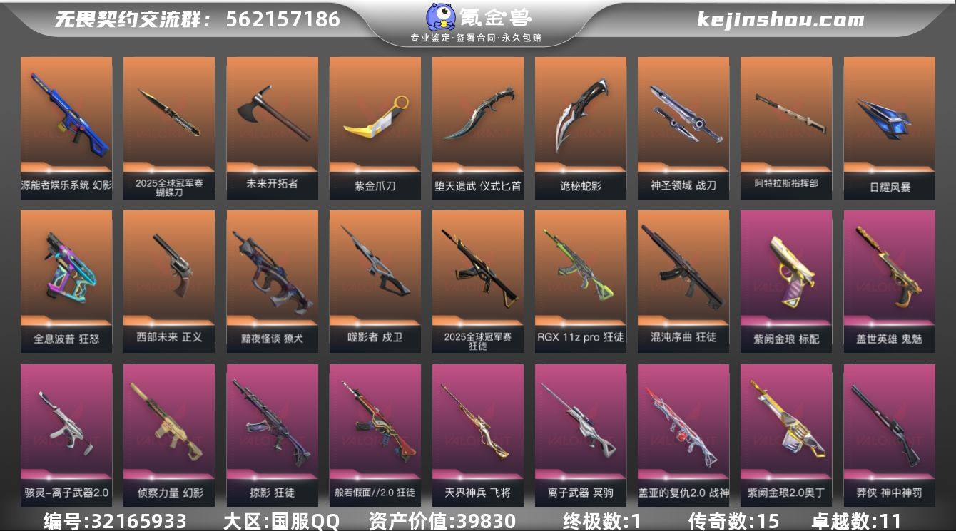 段位: 白银 套装: 2025全球冠军赛 近战武器皮肤: 紫金爪刀-紫阙金琅//2.0,堕天遗武 仪式匕首,神圣领域 战刀,未来开拓者-西部未来,诡秘蛇影,日耀风暴,阿特拉斯指挥部,2025全球冠军赛 蝴蝶刀 步枪皮肤: 幻影-侦察力量,幻影-源能者娱乐系统,狂徒-混沌序曲,獠犬-黯夜怪谈,狂徒-掠影,狂徒-般若假面//2.0,戍卫-噬影者,狂徒-RGX 11z pro,2025全球冠军赛 狂徒 佩枪皮肤: 标配-紫阙金琅,鬼魅-盖世英雄,狂怒-全息波普,正义-西部未来 狙击枪皮肤: 飞将-天界神兵,冥驹-离子武器,莽侠-神中神罚 冲锋枪皮肤: 骇灵-离子武器2.0 机枪皮肤: 战神-盖亚的复仇2.0,奥丁-紫阙金琅2.0 亮点: 【优质装备】:2025全球冠军赛,2025全球冠军赛 蝴蝶刀,幻影-源能者娱乐系统,狂徒-混沌序曲,狂徒-掠影,幻影-侦察力量,冥驹-离子武器,狂徒-RGX 11z pro,标配-紫阙金琅,飞将-天界神兵,鬼魅-盖世英雄,奥丁-紫阙金琅2.0,紫金爪刀,堕天遗武 仪式匕首,神圣领域 战刀,未来开拓者,诡秘蛇影,日耀风暴 遗器,阿特拉斯指挥部,2025全球冠军赛 狂徒