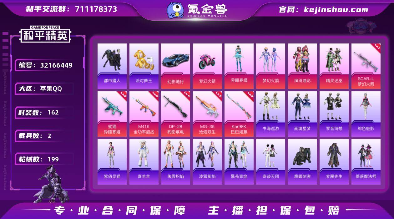 苹果 手Q-5粉装-15特效枪-2载具-4粉色飞行器-71330热力值-5王牌印记-162套装-199枪皮 【热门品类】:粉装-梦幻火箭,粉装-缤纷油彩,套装-浪漫天命,套装-都市猎人,套装-派对舞王,套装-金羽特工,套装-AG战队服,套装-暗影哥特,套装-红熊茄茄 【粉色套装】:粉装-精灵迷巫,粉装-梦幻火箭,粉装-缤纷油彩,角色-异瞳寒姬,角色-辉云木星 【粉色枪皮等级】:SCAR-L-梦幻火箭(七级),M416-全功率超战(六级),蜜獾-异瞳寒姬(六级),ACE32-萌骑漫游(一级),ARX-萌骑跃动(五级),UMP45-萌骑冒险(一级),AKS-74U-森灵之息(五级),Kar98K-巳巳如意(五级),Mk14-福马献瑞(五级),AA12-G-萌骑幻想(二级),DP-28-豹影疾电(五级),MG3-萌骑闯关(一级),PKM-萌骑夺宝(一级),MG-36-沧焰双生(五级),MG-36-虹云熊熊(二级) 【粉色载具】:幻影随行,双人摩托-梦幻火箭 【粉色枪皮】:SCAR-L-梦幻火箭,M416-全功率超战,蜜獾-异瞳寒姬,ACE32-萌骑漫游,ARX-萌骑跃动,UMP45-萌骑冒险,AKS-74U-森灵之息,Kar98K-巳巳如意,Mk14-福马献瑞,AA12-G-萌骑幻想,DP-28-豹影疾电,MG3-萌骑闯关,PKM-萌骑夺宝,MG-36-沧焰双生,MG-36-虹云熊熊 【粉色飞行器】:炫彩糖果飞行器,春暖花开飞行器,梦幻火箭飞行器 【粉色降落伞】:春暖花开降落伞,精灵迷巫降落伞,梦幻火箭降落伞,洛神天依降落伞,环太平洋降落伞,超新星降落伞,精灵梦叶罗丽降落伞,无垠阁降落伞,喜羊羊与灰太狼降落伞,异瞳寒姬降落伞,炫彩糖果降落伞,罪夜之冕降落伞,辉云木星降落伞,虎痴许褚降落伞 【稀有套装】:套装-雪国风尚,套装-炫彩糖果,套装-马上有钱,套装-朱霞炽焰,套装-凌霄紫焰,套装-擎苍青焰,玩偶服-喜羊羊,角色-绯色魅影,角色-紫俏灵猫,套装-书海巡游,套装-画境星梦,套装-琴音绮想,角色-霜刃之御,角色-月烬之祷,套装-雨过天青...