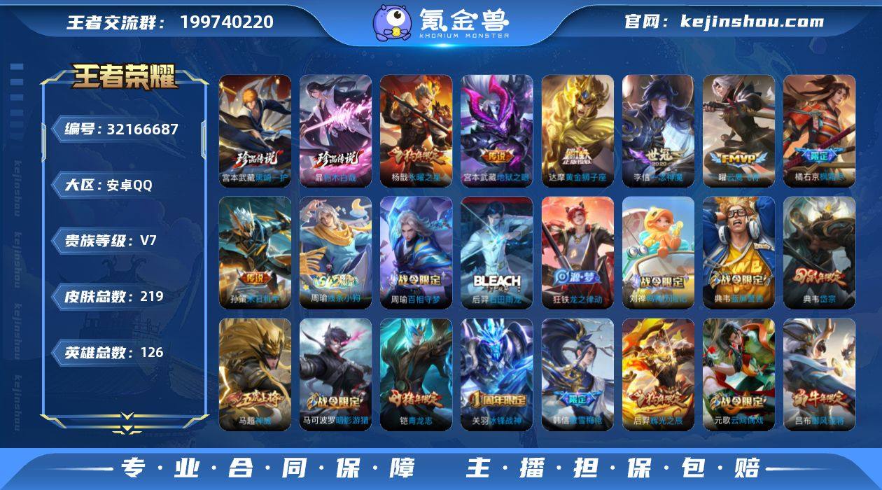 【特价出售】安卓q-V-219皮肤2珍品传说7传说 【珍品传说】 朽木白哉 黑崎一护 【传说】 枫霜尽 永曜之星 云鹰飞将 一念神魔 黄金狮子座 地狱之眼 末日机甲策 【热门】神威 冰封战神 青龙志 御风骁将 寅虎心曲 岱宗 飞衡 龙胆 烈魂 辉光之辰 傲雪梅枪 蓝屏警告 神迹守卫钟馗 狮舞东方 朔望之晖 星空之诺 银河之约 暗影游猎 原初追逐者 黎明之约 死神来了 梁祝 狂想玩偶喵 云间偶戏 苍穹之光 天秀启明 原初探秘者 李小龙 猫狗日记男 金属风暴 地狱岩魂 蔷薇恋人 修罗 白龙吟 千年之狐 紫霞仙子 幽灵船长 乘风破浪 末日机甲男 星夜王子 永昼 天才门将 街头霸王 鬼剑武藏 德古拉伯爵 单词大作战 花好人间 烛龙 穷奇 御狮 御霄 御旌 朔风刀 混沌棋 疑决卦 醍醐杖 万华元夜 演武夺筹 驱傩正仪 未来纪元赵云 千军破阵 拳王 沙漠行僧 金庭之子 霸王丸 大漠名商 敏锐之力 云中旅人 海盐诗旅 科学大爆炸 皇家上将 擒涛扼浪 魅力维加斯 探海日志 水果甜心 古海寻踪 天穹祈灯 高山流水 迷踪丽影 遇见飞天 航海奇遇记 鹰眼统帅 魔术师 顽趣梦奇 126英雄-营地ID:481946206