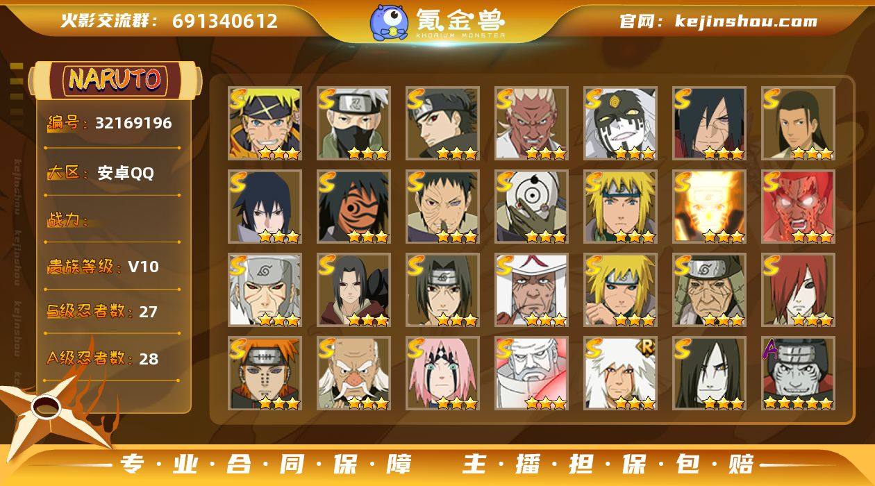 V10/S忍27/A忍28/二星A-达鲁伊「五代目雷影」/二星A-飞段「死司凭血」/二星A-宇智波止水/五星A-猿飞阿斯玛/三星S-旗木卡卡西「须佐能乎」/三星S-猿飞日斩「秽土转生」/二星A-照美冥「五代目水影」/五星A-迈特凯/三星S-千手扉间「秽土转生」/三星S-千手柱间·木叶创立/三星S-大筒木桃式/二星A-长十郎「六代目水影」/二星A-蝎「绯流琥」/三星S-宇智波斑「白面具」/三星S-迈特凯「死门」/三星S-猿飞日斩/二星A-黑土「四代目土影」/二星A-药师兜「半蛇斗篷」/二星A-纲手「妖怪奇谭」/三星S-春野樱 「忍界大战」/二星A-宇智波佐助「万花筒写轮眼」/二星A-迪达拉/二星A-不缘/二星A-日向宁次·忍界大战/二星A-宇智波鼬/三星S-宇智波佐助「永恒万花筒」/三星S-大筒木金式「博人传」/三星S-宇智波鼬「秽土转生」/二星A-长门「青年」/二星A-桃地再不斩/三星S-宇智波带土 「忍界大战」/三星A-飞段/三星S-佩恩「天道」/三星S-漩涡鸣人·宇智波佐助/四星A-蝎/三星S-波风水门/三星S-漩涡鸣人 「九喇嘛连结」/三星S-波风水门「秽土转生」/二星A-角都「秽土转生」/二星A-漩涡博人「桃式显现」/三星A-我爱罗「疾风传」/二星A-李洛克「忍界大战」/三星S-自来也「舞之豪杰」/三星S-神秘面具男 「红夜之刃」/三星S-宇智波止水「须佐能乎」/二星A-宇智波泉奈/三星S-大蛇丸/三星S-艾「忍界大战」/三星S-宇智波斑「秽土转生·解」/二星A-艾 「青年」/三星S-大野木「忍界大战」/二星A-宇智波佐助「须佐能乎」/五星A-干柿鬼鲛/三星S-长门「秽土转生」/三星S-宇智波鼬 「须佐能乎」
