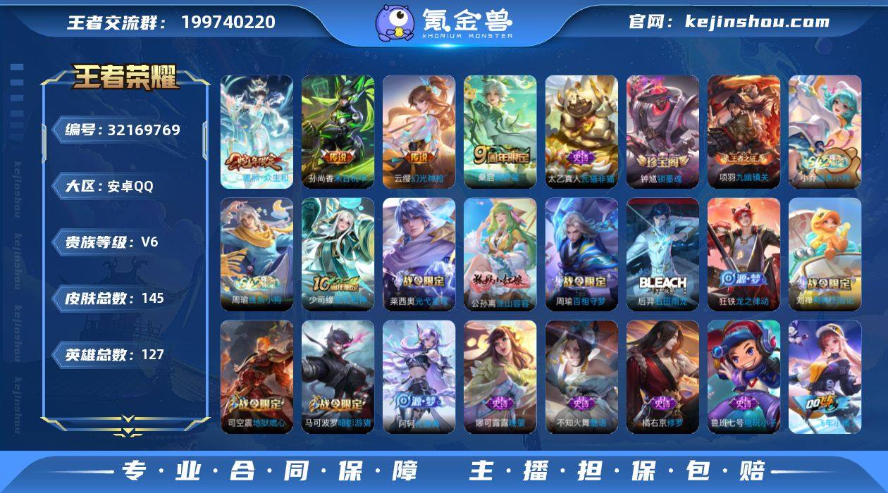 【高性价比小号·1背包未使用水晶·可兑换吕布千魔归渊或安琪拉颠倒童话魔镜·愿照众生和·暗影游猎·可二次】YXw17923-安卓Q-127英雄-145皮肤-9王者印记-170铭文-贵族积分1w【贵族6】【4传说·9按键】【因赛季更新游戏段付以上号为准!】 【英雄全皮】:孙权全皮,敖隐全皮,影全皮 【传说皮肤】:妲己愿照众生和,云缨幻光神枪,桑启鸣野蒿,孙尚香末日机甲 【限定皮肤】:狄仁杰阴阳师,虞姬凯尔特女王,赵云皇家上将,庄周高山流水,孙膑妖精王,扁鹊炼金王,元歌无心,马可波罗暗影游猎,狄仁杰魔术师,狄仁杰万华元夜,达摩沙漠行僧,项羽海滩派对,程咬金演武夺筹,刘邦夺宝奇兵,牛魔御旌,钟馗驱傩正仪,雅典娜黎明之约,鬼谷子原初探秘者,弈星混沌棋,明世隐疑决卦,米莱狄御霄,米莱狄胡桃异想国,嫦娥暖冬兔眠,司空震地狱燃心 【年限皮肤】:妲己愿照众生和 【赛季限定】:孙膑妖精王,扁鹊炼金王,虞姬凯尔特女王,米莱狄御霄,牛魔御旌,弈星混沌棋,明世隐疑决卦,鬼谷子原初探秘者,狄仁杰万华元夜,程咬金演武夺筹,钟馗驱傩正仪,达摩沙漠行僧,东皇太一噬灭天穹,太乙真人谧流熔炉,钟馗虚灵犬护,甄姬逆浪荇歌,亚瑟荣光之誓,雅典娜黎明之约,项羽九幽镇关 【战令限定】:刘邦夺宝奇兵,马可波罗暗影游猎,米莱狄胡桃异想国,嫦娥暖冬兔眠,司空震地狱燃心,百里守约百相守梦,老夫子百相守梦,孙膑茶境仙,马超访茗客,刘禅鸭鸭历险记,沈梦溪鸭鸭历险记,周瑜百相守梦,孙策百相守梦,莱西奥光弋星穹,明世隐往忆晖光,周瑜线条小狗,小乔线条小狗 【史诗皮肤】:钟馗锁墨魂,太乙真人瓦猫非猫,周瑜线条小狗,小乔线条小狗,项羽九幽镇关,少司缘巫礼祀神,莱西奥光弋星穹,公孙离涂山容容,周瑜百相守梦,后羿石田雨龙,狂铁龙之律动,刘禅鸭鸭历险记,阿轲化蝶舞,姬小满飞车小橘子,孙膑茶...