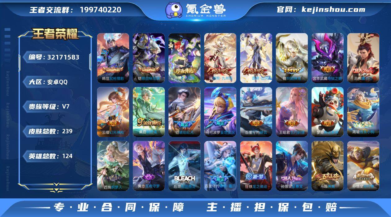 【特价出售】安卓q-V-239皮肤2典藏1珍品传说12传说 【典藏】 银白咏叹调 弑枪猎影 【珍品传说】 时之奇旅孙策 【传说】 曦玄引吕布 铠琥珀纪元 幻光神枪 愿照九州拓 愿照山河定 鸣野蒿 妄想实况 乞巧织情 碎云 炽阳神光 胖达荣荣 地狱之眼 【热门】神威 至尊宝 冰封战神 逐梦之翼 引擎之心 圣诞老人 孙行者 银河之约 冰冠公主 织梦人 黄忠百相守梦 雪豹霜爪 器灵浮梦炉 东方月初 燃音魔法 顽趣阿古朵 无限星赏官 李小龙 水晶猎龙者 暗隐猎兽者 金属风暴 曙光守护者 舞动绿茵 妄想食味 逐浪之夏 心灵战警 功夫厨神 圣诞恋歌 幽灵船长 乘风破浪 圣诞狂欢 星夜王子 节奏热浪 天才门将 绅士熊喵 时之恋人女 偶像歌手 街头霸王 箭羽风息 暗渊魔法 乐园奇幻夜 摇滚巨星 缤纷独角兽 鬼剑武藏 德古拉伯爵 冰雪圆舞曲 青焰无极 花好人间 苍威无极 克喵 群星魔术团程咬金 未来纪元赵云 拳王 沙漠行僧 女仆咖啡 金庭之子 大漠名商 敏锐之力 云中旅人 海盐诗旅 皇家上将 擒涛扼浪 魅力维加斯 探海日志 水果甜心 古海寻踪 天穹祈灯 迷踪丽影 埋骨钱 地狱燃心 江河有灵 顽岩魄 纤云弄巧 怒海争锋 五谷丰年 夏日便利店蔡文姬 乱世虎臣 鹰眼统帅 魔术师 124英雄-营地ID:1796907120