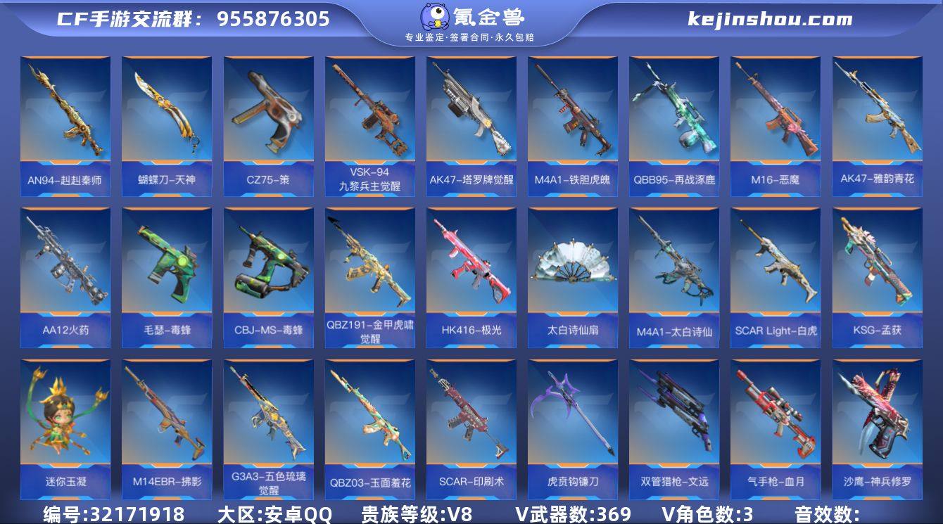[17415297]V8 21王者武器 236英雄武器 5英雄角色 可二次 可修改实名 【v武器】AK47-木兰,蝴蝶刀-天神,百战巾帼枪,唐刀-华夏传说,AN94-赳赳秦师,CZ75-策,9A91-天神,M16-恶魔,QBB95-再战涿鹿,M4A1-铁胆虎魄,USP-仁德,女皇利刃-铁胆虎魄,QBZ191-封神榜,Origin12-机变奇蛇觉醒,CZS2-仲康,蟒蛇-鼓龙,AWM-指南针觉醒,AWM-指南针,AN94-精卫填海,蚩尤战弓觉醒,气勇胆烈戟,沙鹰-宇航兔兔,9A91-魔蜥觉醒,QBB95-极光,MR1-幽暗骑士,98K-星神,M1216-血月,M4A1-堕天神,KSG-极光,打击者-天神,M4A1-太白诗仙,USP-太白诗仙,太白诗仙扇,QBZ03-玉面羞花,雌雄双股剑,PP19野牛-造纸术,SCAR-探星者,M4A1-猎神,沙鹰-神兵修罗,98K-蜻蜓,马来剑-耀金伯爵,迷你究极泰坦,QBZ97-智控天眼,9A91-诛仙四剑,修罗之刃,G36-李星云,拳套-光明之神,苦肉鞭,Ash-马上来财,QSZ92-盖,P90-雷暴王者,光明之神弓,GLOCK18-猎神,QBZ97-浩瀚征途,M14EBR-葫芦山庄,G3A3-衍神兵,KSG-钟馗觉醒,沙鹰-螳螂,破邪蛇棍觉醒,SCAR-心动PICK,螳螂双刃,左轮-卧龙觉醒,双持沙鹰-元让,AN94-盖,巴雷特-朱雀,威虎碎魂刀,USP-仲康,樱龙刺·超觉,GM6-逆骨,QSZ92-冰魂觉醒,手斧-机械迷城,M200-幻神,98K-黑骑士,AWM-妙才,巴雷特-金色蔷薇,M200-心动次元觉醒,AK47-沙漠领主,M4A1-死神,98K-血月,M4A1-黑骑士,AK47-无影,M4A1-雷神,AK47-火麒麟,09式狙-天神,AK12-天启,双持斯泰尔-天使,汤姆逊-烈龙,KSG-火力竞放觉醒,M12S-雷霆,加特林-蟒蛇,巴雷特-雷神,巴雷特-极光,巴雷特-毁灭,刘易斯-血月,加特林-炼狱,RPK-赤炎盘龙,CZS2-心动次元觉醒,M4A1-雷霆,AK47-沙漠郡主-超觉,AK47-猩红传说,AK47-幸运日觉醒,MK47-云舞,81式-光明之神,M4A1-海骑士,AK47-血武士,MK47-机械纪元,M4A1-赛博雷神,MK47-仁德,AK47-雷暴,M4A1-机械迷城,M4A1-星象,擎天,M4A1-