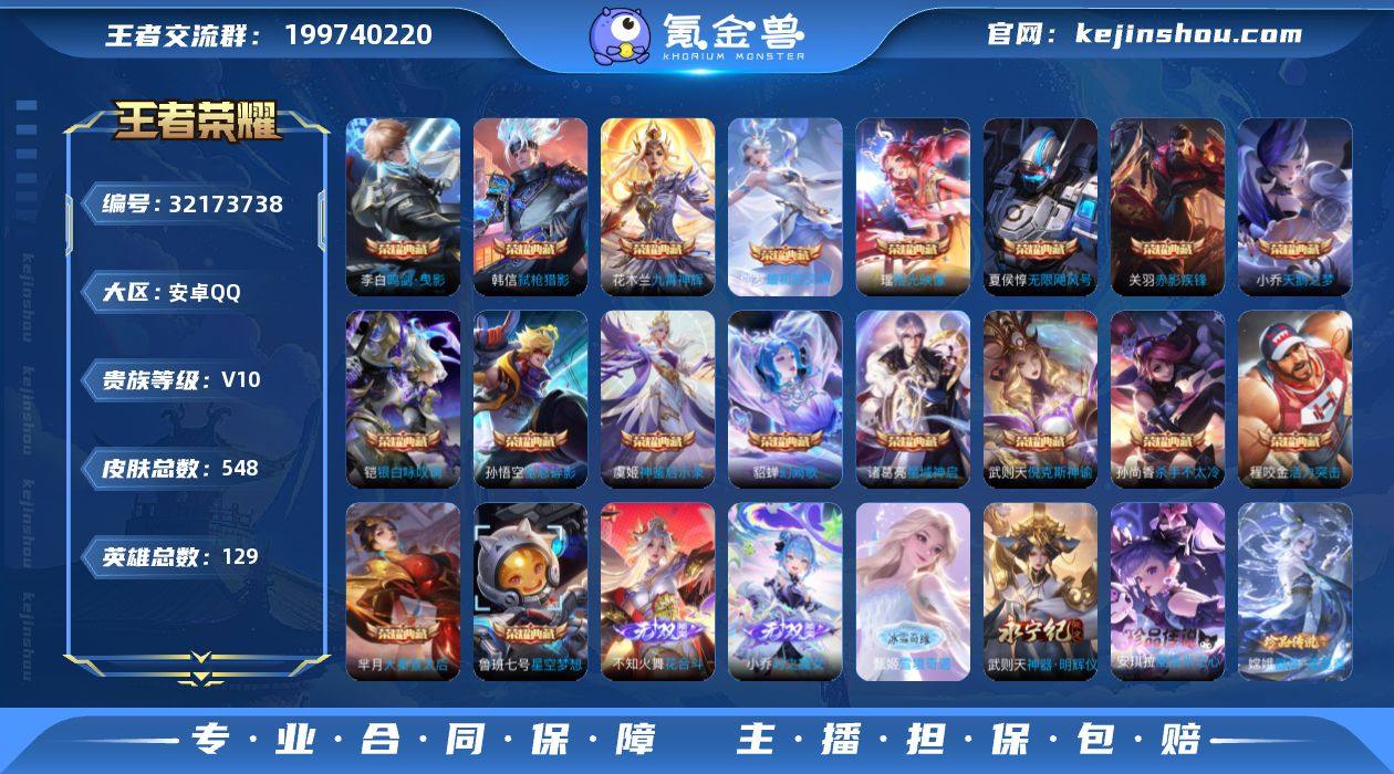 【店铺主推V10·差1满典藏·4无双·2珍品·时之魔女·花合斗·雪境奇遇·神器明辉仪·器灵落星盏·酷洛米之心·可二次】YXw13711-安卓Q-129英雄-544皮肤-20王者印记-300铭文-贵族积分35w【贵族10】【19典藏·4无双·2珍品·5星传说·69传说·2天幕·22按键·440个性戳戳·275幸运值】【因赛季更新游戏段付以上号为准!】 【英雄全皮】:墨子全皮,嬴政全皮,高渐离全皮,扁鹊全皮,夏侯惇全皮,典韦全皮,武则天全皮,程咬金全皮,姜子牙全皮,孙权全皮,不知火舞全皮,钟馗全皮,苍全皮,杨戬全皮,哪吒全皮,黄忠全皮,苏烈全皮,狂铁全皮,李信全皮,盾山全皮,猪八戒全皮,蒙犽全皮,蒙恬全皮,夏洛特全皮,司空震全皮,金蝉全皮,空空儿全皮,影全皮,海诺全皮 【荣耀典藏】:武则天英雄,孙悟空全息碎影,武则天倪克斯神谕,夏侯惇无限飓风号,小乔天鹅之梦,孙尚香杀手不太冷,鲁班七号星空梦想,芈月大秦宣太后,程咬金活力突击,李白鸣剑曳影,诸葛亮星域神启,花木兰九霄神辉,关羽赤影疾锋,铠银白咏叹调,貂蝉幻阙歌,韩信弑枪猎影,虞姬神鉴启示录,瑶拾光映像,伽罗最初的交响 【无双皮肤】:武则天神器明辉仪,小乔时之魔女,不知火舞花合斗,甄姬雪境奇遇 【珍品传说】:嫦娥器灵落星盏,安琪拉酷洛米之心 【星元皮肤】:孙悟空幽冥火,宫本武藏幽冥之眼,武则天幻海之心,兰陵王荆棘舞步,狄仁杰星际治安官 【天幕】:共赏芳华天幕,龙腾四海天幕 【传说皮肤】:杨戬纵目迁山,后羿神树通天,曹操万灵伏威,后羿千劫归真,司空震愿照山河定,女娲愿照千秋盛,妲己愿照众生和,云缨幻光神枪,嬴政玄雷天君,夏侯惇霜北刀,铠冥王哈迪斯,墨子黄金天蝎座,吕布曦玄引,典韦战鼓燎原,孙尚香乘龙问璇玑,孙策乘龙淬吴钩,赵云乘龙铭钟鼎,铠琥珀纪元,澜逐花归海,艾琳觅芳踪,孙膑小动物乐团,王昭君永恒水手月亮,宫...