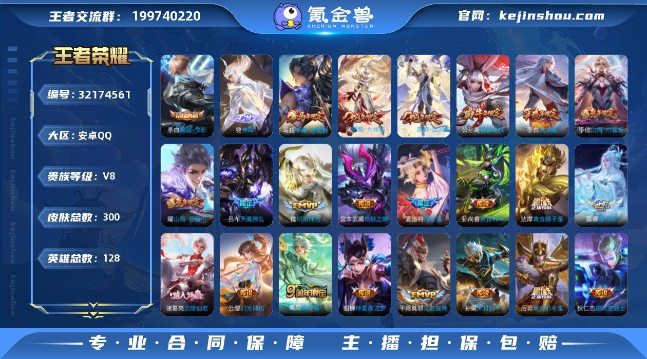 安卓Q-V8-最强王者段位-128英雄-300皮肤-1典藏皮肤-1无双-27传说-79史诗 【英雄全皮】:孙权全皮,夏洛特全皮,影全皮 【荣耀典藏】:李白鸣剑曳影 【无双皮肤】:铠神罪 【传说皮肤】:马超神骥逐星野,司空震愿照山河定,澜愿照九州拓,云缨幻光神枪,桑启鸣野蒿,露娜霜月吟,夏洛特浮生妄,曜山海苍雷引,李信山海炽霜斩,孙策末日机甲,赵云淬星耀世,公孙离祈雪灵祝,镜炽阳神光,虞姬启明星使,干将莫邪久胜战神,达摩黄金狮子座,梦奇胖达荣荣,后羿黄金射手座,诸葛亮武陵仙君,貂蝉仲夏夜之梦,李白凤求凰,孙尚香末日机甲,宫本武藏地狱之眼,孙悟空地狱火,吕布天魔缭乱,武则天海洋之心,狄仁杰超时空战士 【限定皮肤】:白起狰,姜子牙天穹之誓,杨戬破阵退雄兵,狄仁杰阴阳师,虞姬凯尔特女王,赵云皇家上将,墨子神迹守卫,妲己时之奇旅,嬴政优雅恋人,庄周高山流水,钟无艳超时空战士,芈月重明,吕布天魔缭乱,吕布猎兽之王,元歌无心,甄姬游园惊梦,甄姬落雪兰心,曹操烛龙,典韦穷奇,马可波罗逐梦之星,马可波罗暗影游猎,马可波罗山海玄木吟,狄仁杰魔术师,达摩沙漠行僧,项羽海滩派对,项羽霸王别姬,韩信傲雪梅枪,王昭君凤凰于飞,兰陵王金庭之子,孙悟空至尊宝,牛魔御旌,李元芳云中旅人,虞姬启明星使,钟馗驱傩正仪,干将莫邪胡桃夹子,雅典娜黎明之约,太乙真人饕餮,太乙真人华丽摇滚,鬼谷子五谷丰年,诸葛亮武陵仙君,苏烈千军破阵,百里玄策原初追逐者,梦奇顽趣,公孙离祈雪灵祝,沈梦溪大漠名商,裴擒虎李小龙,裴擒虎擒涛扼浪,狂铁御狮,米莱狄御霄,云中君纤云弄巧,李信山海炽霜斩,盾山御銮,上官婉儿梁祝,嫦娥暖冬兔眠,曜山海苍雷引,鲁班大师探海日志,桑启海盐诗旅,夏洛特浮生妄,暃星界游侠,艾琳女武神,阿古朵江河有灵,张良古海寻踪,蒙犽百解令,蒙恬荣光...