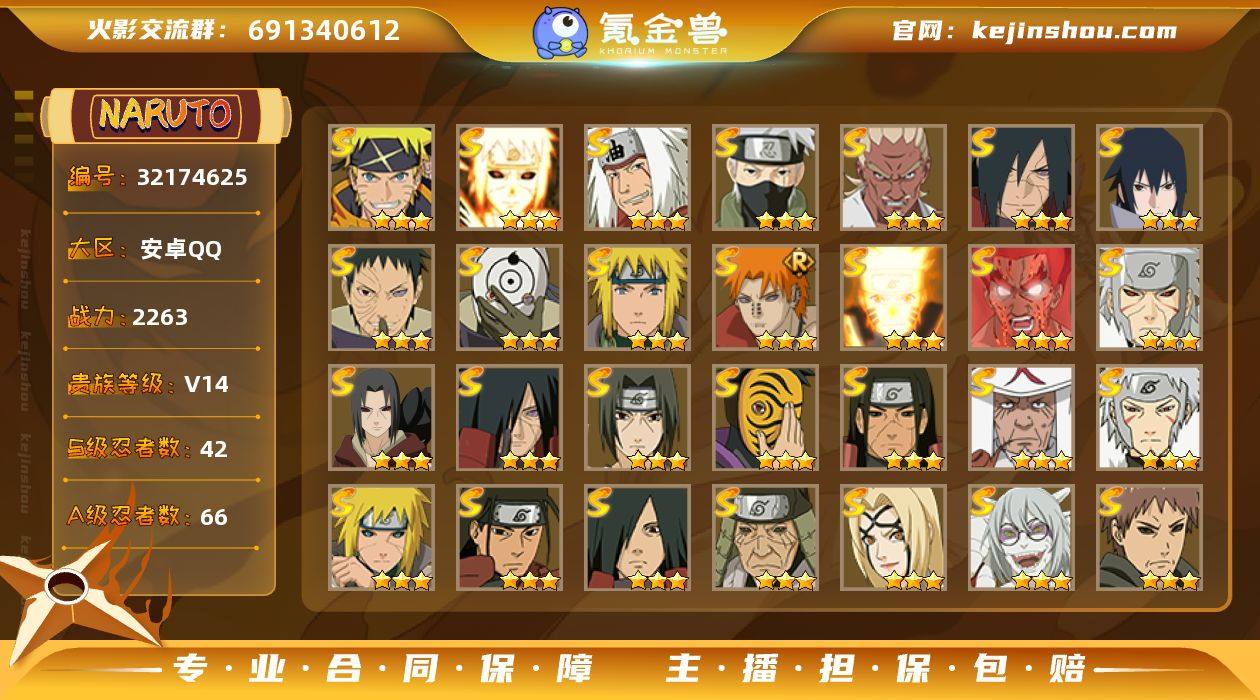 MCK630766 【白面具「绝望的世界」+秽土斑「唯一的敬畏者」2个648奥义!(可转苹果)2263w白破超+罗砂+半藏42s+3祈愿13直购66a+熊猫+螃蟹+二尾+80创柱碎片+80创斑碎片+80十尾带土碎片+80大野木碎片+秽土迪达拉「艺术家再临」】 战力2263 账号等级161 忍者总数310 游戏大区924 魅力值21581 S忍碎片数量6209 剩余高招券40 【可修改】 【榜百内】 【VIP14】 S级忍者42 A级忍者66 通灵兽23 秘卷3 时装11 传承奥义3 决斗场景2 主场景2 决斗幕布11 S级忍者:秽土转生宇智波斑,忍界大战宇智波带土,忍界大战春野樱,秽土转生解宇智波斑,神秘面具男,忍界大战艾,秽土转生金角银角,秽土转生千手扉间,秽土转生半藏,传说中的三忍自来也,舞之豪杰自来也,须佐能乎旗木卡卡西,漩涡鸣人·宇智波佐助,死门迈特凯,三代目雷影艾,四代目风影罗砂,自来也,波风水门,纲手,仙人模式药师兜,秽土转生猿飞日斩,大蛇丸,千手柱间,千手扉间,猿飞日斩,仙人模式自来也,须佐能乎宇智波鼬,天道佩恩,九喇嘛连结漩涡鸣人,永恒万花筒宇智波佐助,九喇嘛连结波风水门,三代目土影大野木,超佩恩天道,白面具宇智波斑,百豪纲手,秽土转生宇智波鼬,秽土转生长门,宇智波斑,秽土转生波风水门,秽土转生千手柱间,二代目水影鬼灯幻月,二代目土影无; A级忍者:新春限定宇智波鼬,神驹佑将小南,宇智波泉奈,六代目水影长十郎,青年三船,元气夏日旗木卡卡西,死司凭血飞段,角都,五代目雷影达鲁伊,漂泊浪客佩恩六道,桃式显现漩涡博人,仙人模式巳月,幻之真容旗木卡卡西,鲛肌融合干柿鬼鲛,忍界大战奇拉比,晓大蛇丸,忍界大战土台,侠隐江湖大野木,四代目土影黑土,青春爆炸迈特凯,百豪春野樱,忍界大战秋道丁次,忍界大战日向宁次,忍界大战李洛克,忍界大战我爱罗,忍界大战旗木卡卡西,秽土转生迪达拉,秽土转生桃地...