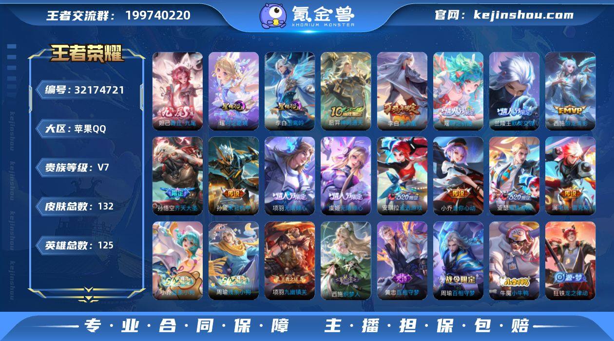 贵族等级:V7 典藏皮肤数:0 珍品无双皮肤数:0 无双皮肤数:1 珍品传说皮肤数:0 传说皮肤数:13 史诗皮肤数:43 皮肤数:132 英雄数:125 段位:王者 卖家说:瑶的无双皮肤,凤求凰系列+星元都有,有紫瑶,刚抽出来的,兰陵王情侣一套,项羽虞姬情侣皮肤一套,安琪拉和小乔星元也有