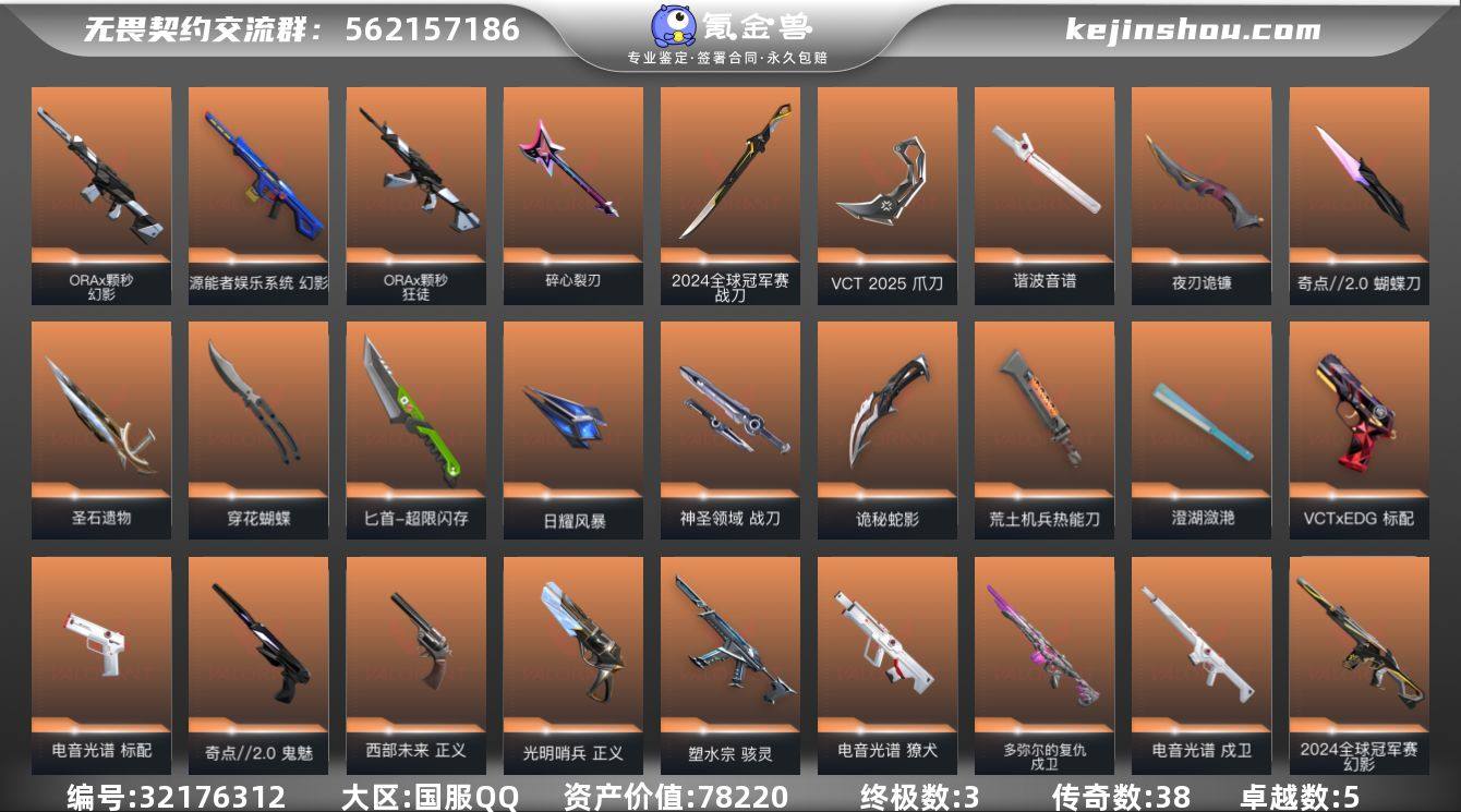 YY -仓库价值78220,剩余R点90,剩余点券83 英雄28 ,黄金I 【 24冠军套,多热门主战毕业皮,极品黄金皮肤号】 套装:(电音光谱,VCT2025赛季,奇点//2.0,光明哨兵,VCTxEDG 队伍,2024全球冠军赛) 热门皮肤:(塑水狂徒,紫金狂徒,流脓狂徒,塑水飞将,黯夜幻影,西部正义,显卡狂徒,塑水骇灵,25冠军狂徒,耀鳞鬼魅,离子正义,夜刃诡镰,离子狂徒,锦鲤扇,源能幻影,颗秒幻影,归零狂徒,颗秒狂徒,穿花蝴蝶,神中神罚莽侠,噬影狂徒等) 其他皮肤/卡面/挂饰等请看截图,限时道具/段位等以实际验号为准,如账号因没有维护、赛季更新等不可抗因素发生变化,不属于账号质量问题