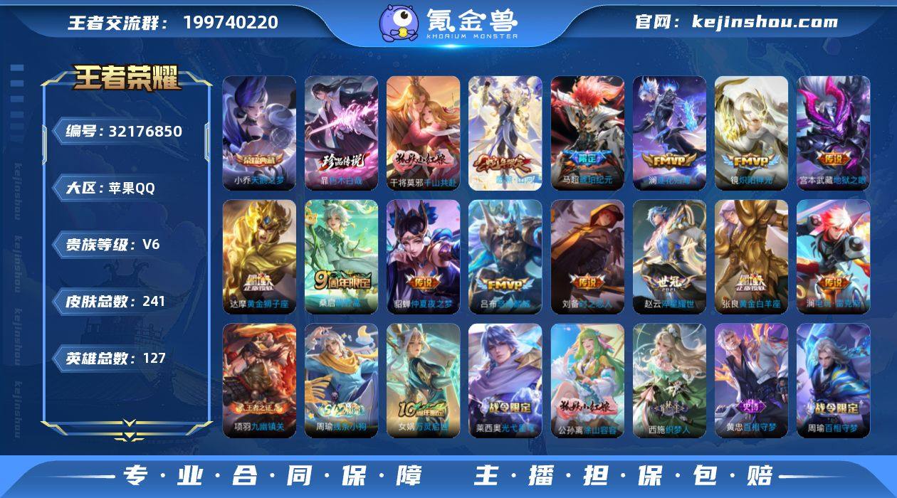 苹果Q-V6-最强王者段位-127英雄-241皮肤-1典藏皮肤-1珍品传说-14传说-75史诗 【英雄全皮】:孙权全皮,司空震全皮,影全皮 【荣耀典藏】:小乔天鹅之梦 【珍品传说】:暃朽木白哉 【传说皮肤】:干将莫邪千山共赴,司空震愿照山河定,桑启鸣野蒿,马超琥珀纪元,澜逐花归海,澜电玩雷克斯,吕布怒海麟威,赵云淬星耀世,镜炽阳神光,刘备时之恋人,张良黄金白羊座,达摩黄金狮子座,貂蝉仲夏夜之梦,宫本武藏地狱之眼 【限定皮肤】:虞姬夏日便利店,姜子牙天穹之誓,杨戬破阵退雄兵,狄仁杰阴阳师,赵云皇家上将,墨子降魔,庄周高山流水,狄仁杰魔术师,狄仁杰万华元夜,达摩沙漠行僧,项羽海滩派对,老夫子航海奇遇记,程咬金演武夺筹,兰陵王金庭之子,钟馗驱傩正仪,百里玄策原初追逐者,沈梦溪大漠名商,裴擒虎擒涛扼浪,云中君纤云弄巧,嫦娥拒霜思,西施玲珑珍味,鲁班大师探海日志,艾琳流音漫舞,司空震地狱燃心,阿古朵江河有灵,张良古海寻踪,蒙犽百解令,蒙恬荣光圣徽,高渐离燃音魔法,妲己灵卜魔法,鬼谷子天穹祈灯,马超琥珀纪元,姬小满妄想食味,沈梦溪龙舞盛年,鲁班七号蔬乡物语,李元芳蔬乡物语,刘邦剑破天穹,程咬金群星魔术团,镜青焰无极,项羽苍威无极,周瑜熔金海岸 【年限皮肤】:司空震愿照山河定 【赛季限定】:狄仁杰万华元夜,程咬金演武夺筹,钟馗驱傩正仪,达摩沙漠行僧,兰陵王金庭之子,沈梦溪大漠名商,裴擒虎擒涛扼浪,鲁班大师探海日志,张良古海寻踪,鬼谷子天穹祈灯,刘邦剑破天穹,姜子牙天穹之誓,东皇太一噬灭天穹,太乙真人谧流熔炉,钟馗虚灵犬护,甄姬逆浪荇歌,亚瑟荣光之誓,百里玄策原初追逐者,蒙恬荣光圣徽,牛魔星界战将,项羽九幽镇关 【战令限定】:老夫子航海奇遇记,西施玲珑珍味,司空震地狱燃心,艾琳流音漫舞,高渐离燃音魔法,妲己灵卜魔法,鲁班...