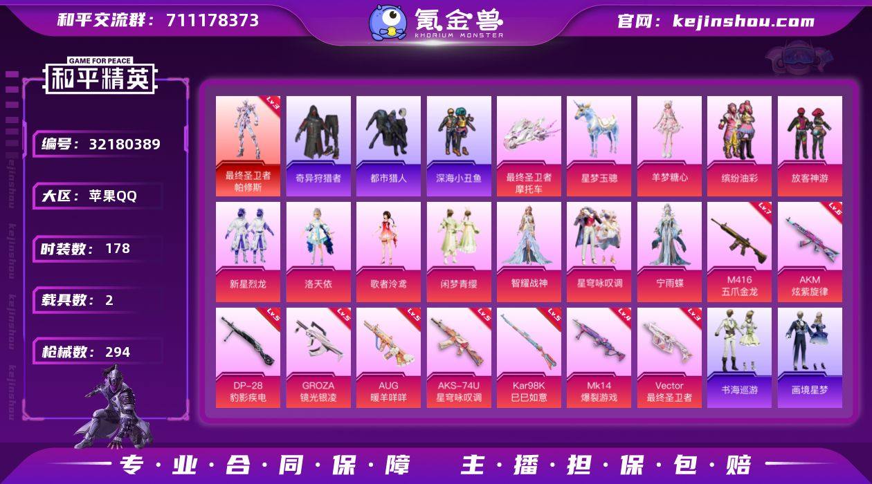 【3级帕修斯 都市 猪妹 放客 哥特 满地铁天赋】YXc26955-【无二次协助处理】【因赛季更新游戏段付以上号为准!】 苹果Q-1红装5稀有2载具12粉装11特效枪15热门178套装294枪皮 9w热力值 16印记 历史超级王牌8星 【1红装】 最终圣卫者-帕修斯 (3级) 【5稀有】 奇异狩猎者 AWM-黄金龙骨 AKM-缤纷海域 都市猎人 浪漫天命 【2载具】 星梦玉骢 最终圣卫者摩托车 【12粉装】 宁雨蝶 小舞雪昙 小舞灵珑 洛天依 星穹咏叹调 羊梦糖心 闲梦青缨 智耀战神 缤纷油彩 放客神游 歌者泠鸢 新星烈龙 【11特效枪】 M416-五爪金龙 (7级) AKM-炫紫旋律 (6级) AKS-74U-星穹咏叹调 (5级) Kar98K-巳巳如意 (5级) Vector-最终圣卫者 (3级) DP-28-豹影疾电 (5级) AUG-暖羊咩咩 (5级) Mk14-爆裂游戏 (4级) GROZA-镜光银凌 (5级) Mk14-福马献瑞 (1级) ACE32-萌骑漫游 (5级) 【15热门】 小丑鱼 龟仙人 呆萌铁蟹 鹰眼刺客 激萌罗小黑 迅捷狂鲨 深海小丑鱼 暗影哥特 团圆交子 瑞龙福将 漫步者 破蛋小黄鸡 M762-瑞龙福将 M24-奇异狩猎者 S686-奇异狩猎者 【1飞行器】 镜光幻境飞行翼 【1头盔】 金羽特工头盔 【2背包】 深海小丑鱼背包 金羽特工
