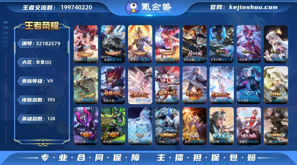 苹果Q-V9-最强王者段位-127英雄-409皮肤-3典藏皮肤-1无双-4珍品传说-30传说-122史诗HZ2631607 【英雄全皮】:刘禅全皮,孙权全皮,刘备全皮,鬼谷子全皮,敖隐全皮,夏洛特全皮,戈娅全皮,空空儿全皮,影全皮 【荣耀典藏】:花木兰九霄神辉,虞姬神鉴启示录,伽罗最初的交响 【无双皮肤】:公孙离离恨烟 【珍品传说】:伽罗沧流箭,安琪拉酷洛米之心,瑶大耳狗之梦,马可波罗怪盗基德 【传说皮肤】:貂蝉神骥聚万邦,后羿神树通天,公孙离云诺千山,西施续相思,女娲愿照千秋盛,虞姬愿照岁时盈,云缨幻光神枪,王昭君映山客,桑启鸣野蒿,海月金乌负日,孙尚香乘龙问璇玑,露娜霜月吟,上官婉儿妄想奇谈,夏洛特浮生妄,虞姬无限倾心,伽罗炽翼辉光,李信山海炽霜斩,不知火舞绯月行,王昭君星穹之声,马超无双飞将,瑶时之祈愿,孙尚香异界灵契,公孙离祈雪灵祝,诸葛亮时雨天司,铠绛天战甲,镜炽阳神光,虞姬启明星使,李信一念神魔,刘备时之恋人,貂蝉仲夏夜之梦 【限定皮肤】:公孙离离恨烟,蒙犽顽岩魄,蔡文姬夏日便利店,大乔绒语心约,虞姬夏日便利店,姜子牙天穹之誓,杨戬破阵退雄兵,狄仁杰阴阳师,赵云皇家上将,妲己时之奇旅,孙尚香蔷薇恋人,孙尚香异界灵...