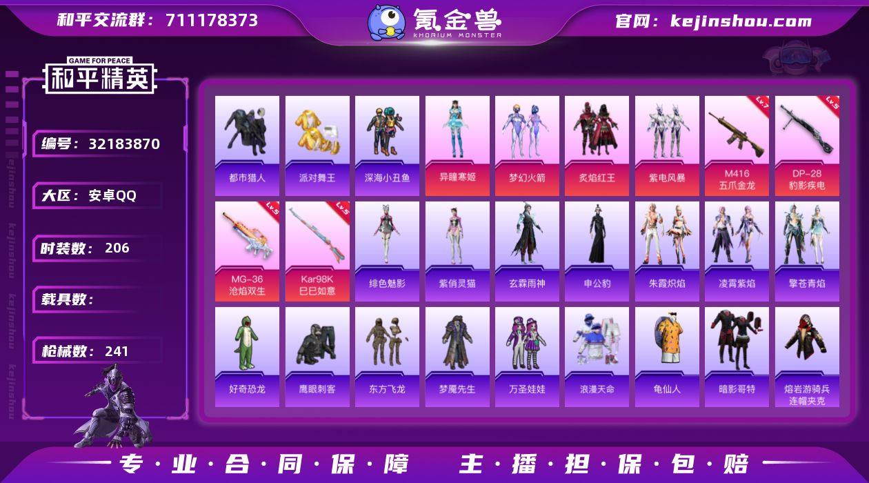 安卓 手Q-5粉装-9特效枪-0载具-5粉色飞行器-72131热力值-10王牌印记-206套装-241枪皮【热门品类】:粉装-梦幻火箭,套装-浪漫天命,套装-都市猎人,套装-派对舞王,套装-深海小丑鱼,套装-SS1特训,套装-龟仙人,套装-暗影哥特,M416-星际漫游,熔岩游骑兵连帽夹克【粉色套装】:粉装-梦幻火箭,粉装-炙焰红王,粉装-紫电风暴,角色-异瞳寒姬,角色-月中灵【粉色枪皮等级】:M416-五爪金龙(七级),ACE32-萌骑漫游(三级),UMP45-萌骑冒险(四级),AKS-74U-森灵之息(五级),Kar98K-巳巳如意(五级),Mk14-福马献瑞(五级),DP-28-豹影疾电(五级),MG-36-沧焰双生(五级),破片手榴弹-招财进宝(五级)【粉色枪皮】:M416-五爪金龙,ACE32-萌骑漫游,UMP45-萌骑冒险,AKS-74U-森灵之息,Kar98K-巳巳如意,Mk14-福马献瑞,DP-28-豹影疾电,MG-36-沧焰双生,破片手榴弹-招财进宝【粉色飞行器】:香车宝马飞行器,炫彩糖果飞行器,梦幻火箭飞行器,极意拳锋飞行器【粉色降落伞】:极限特训降落伞,幻影战神降落伞,凝视深渊降落伞,梦幻火箭降落伞,童趣迷兔降落伞,垂柳戏鸭降落伞,第五大道降落伞,创世·救赎降落伞,异瞳寒姬降落伞,极意拳锋降落伞,炫彩糖果降落伞【稀有套装】:套装-龟仙人,套装-雪国风尚,套装-炫彩糖果,角色-奈斯,角色-魂电,角色-阿虎,套装-马上有钱,套装-大漠长歌,角色-乐音,套装-朱霞炽焰,套装-凌霄紫焰,套装-擎苍青焰,角色-申公豹,角色-绯色魅影,角色-紫俏灵猫,角色-玄霖雨神,套装-雨过天青,套装-红釉青花,角色-唐三【稀有枪皮】:AUG-冰晶雪宝,AKM-冰凉西瓜,AKM-夜灯,AKM-彩虹符号,AKM-影袭,AKM-生命誓言,AKM-破晓战魂,AKM-萌趣颜团子,M16A4-凝视深渊,M16A4-夜灯,M16A4-幻世战舞者,M16A4-星际漫游,M16A4-甜心亚梦,M16A4-生命誓言,M16A4-蓝色火焰,SCAR-L-炫彩节奏...