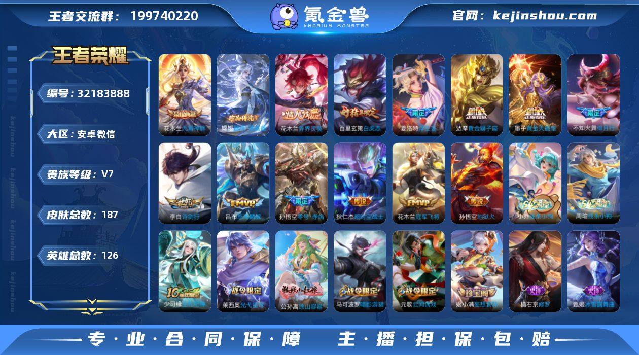 贵族等级:V7 典藏皮肤数:1 珍品无双皮肤数:0 无双皮肤数:0 珍品传说皮肤数:1 传说皮肤数:12 史诗皮肤数:51 皮肤数:187 英雄数:126 段位:至圣王者