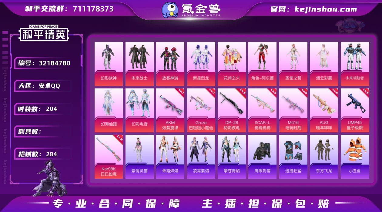 df安卓 手Q-【精品身法号,男神公主混搭素材号,巡查衣,蓝螳螂,粉螳螂,暗夜之虎,发光眼镜,花间之火,新星小白龙,烟云彩露,菠萝头盔,75绝世收藏家,9万热力值,19高印记9粉枪对掏号】12粉装-9特效枪-0载具-5粉色飞行器-90851热力值-19王牌印记-204套装-284枪皮 【热门品类】:绝对防御上衣,套装-小丑鱼,角色-军刀雅典娜,套装-暗夜之虎,套装-龟仙人,角色-8号机,角色-Mark.06,熔岩游骑兵连帽夹克 【粉色套装】:粉装-幻影战神,粉装-未来战士,粉装-放客神游,粉装-新星烈龙,粉装-花间之火,角色-阿尔茜,角色-圣堂之誓,角色-烟云彩露,粉装-未来领航者,角色-幻海仙踪,粉装-幻彩电音,角色-罪夜之冕 【粉色枪皮等级】:AKM-炫紫旋律(七级),SCAR-L-锦绣绵绵(五级),M416-电玩时刻(五级),GROZA-巴啦啦小魔仙(七级),AUG-暖羊咩咩(五级),UMP45-量子极限(五级),AKS-74U-森灵之息(五级),Kar98K-巳巳如意(五级),DP-28-豹影疾电(五级) 【粉色枪皮】:AKM-炫紫旋律,SCAR-L-锦绣绵绵,M416-电玩时刻,GROZA-巴啦啦小魔仙,AUG-暖羊咩咩,UMP45-量子极限,AKS-74U-森灵之息,Kar98K-巳巳如意,DP-28-豹影疾电 【粉色飞行器】:炫彩糖果飞行器,灵感创作师飞行器,繁龙极客飞行器,极意拳锋飞行器 【粉色降落伞】:绝对恒星降落伞,幻影战神降落伞,未来战士降落伞,童趣迷兔降落伞,暗夜玫瑰降落伞,橘柚倾心降落伞,闪光银龙降落伞,垂柳戏鸭降落伞,灵感创作师降落伞,拂晓神骑降落伞,小叽联名款降落伞,绝色倾城降落伞,江南烟雨降落伞,精灵梦叶罗丽降落伞,创世·救赎降落伞,BEARBRICK降落伞,千金淑猫降落伞,幻影飞狐降落伞,星穹咏叹调降落伞,荧海星豚降落伞,异瞳寒姬降落伞,炫彩糖果降落伞 【稀有套装】:套装-龟仙人,套装-巳巳如意,套装-小鸟芋圆,套装-雪国风尚,套装-炫彩糖果,套...
